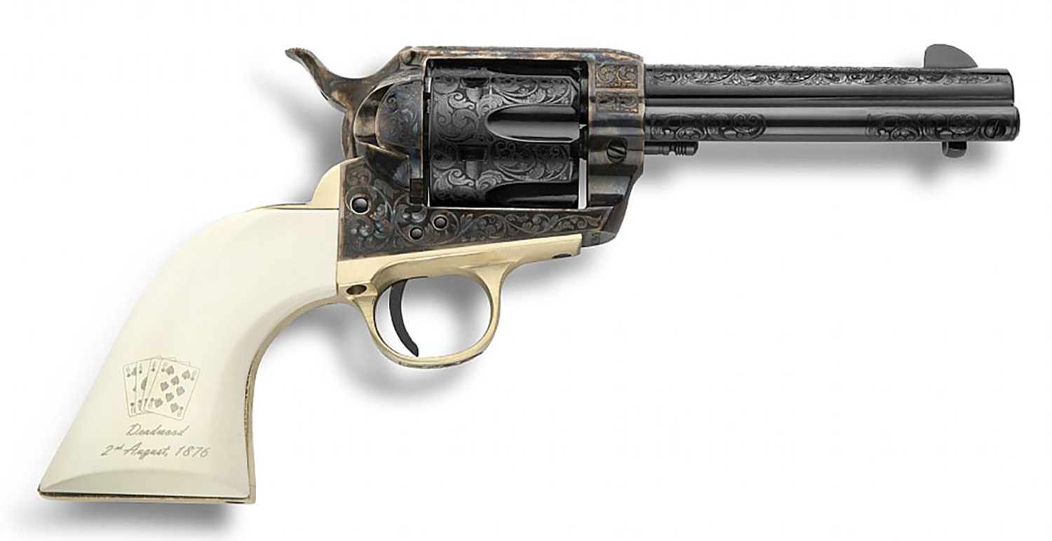 Pietta GW357DMH434NMAE Great Western II Deadman’s Hand 357 Mag 6rd 4.75″ Blued Octagon Steel Barrel & Cylinder, Color Case Hardened Steel Frame, White Polymer w/Aces & Eights Grip, Exposed Hammer