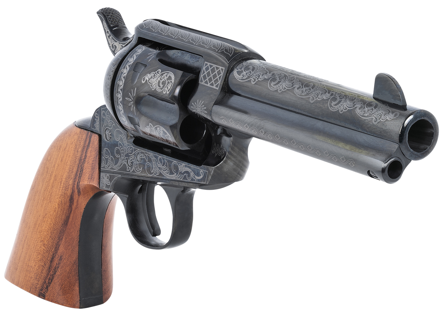 Pietta HF45LLE434NMBW 1873 Great Western II Sports South Exclusive 45 Colt (Long Colt) 6rd 4.75″ Blued Engraved Steel Barrel & Cylinder, Blued Engraved Steel Frame, Walnut Grip, Exposed Hammer