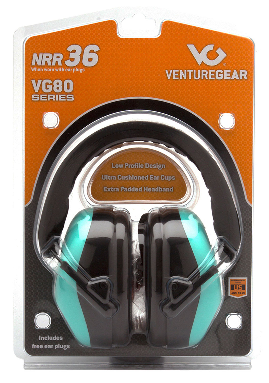 Pyramex VGPM8063C Venture Gear V80 Muff Foam 26 dB 32 dB Over the Head Orange Black/Teal Adult 1 Pair