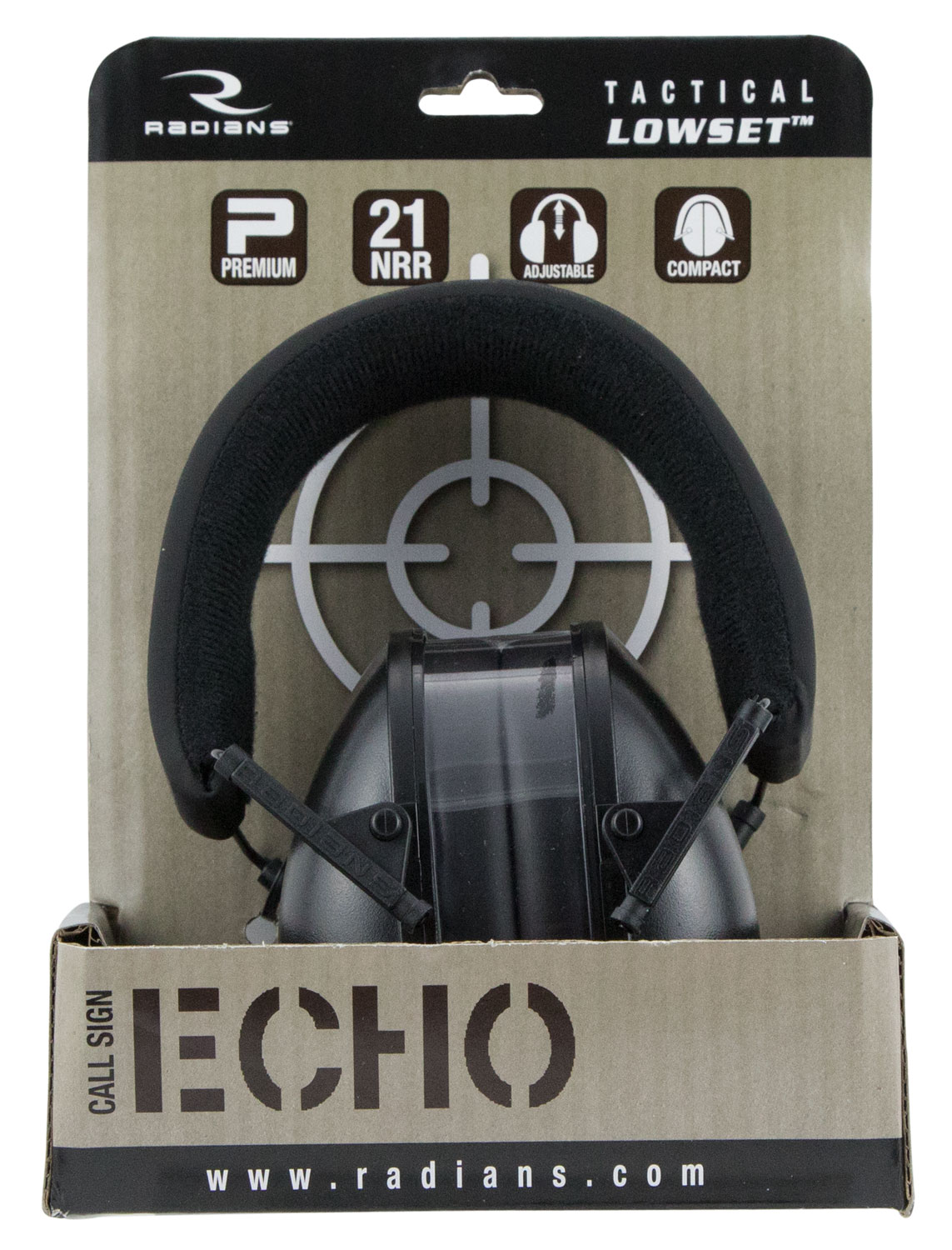 Radians CSE40BX Tactical Lowset Passive Muff Polymer 21 dB Over the Head Black Adult 1 Pair