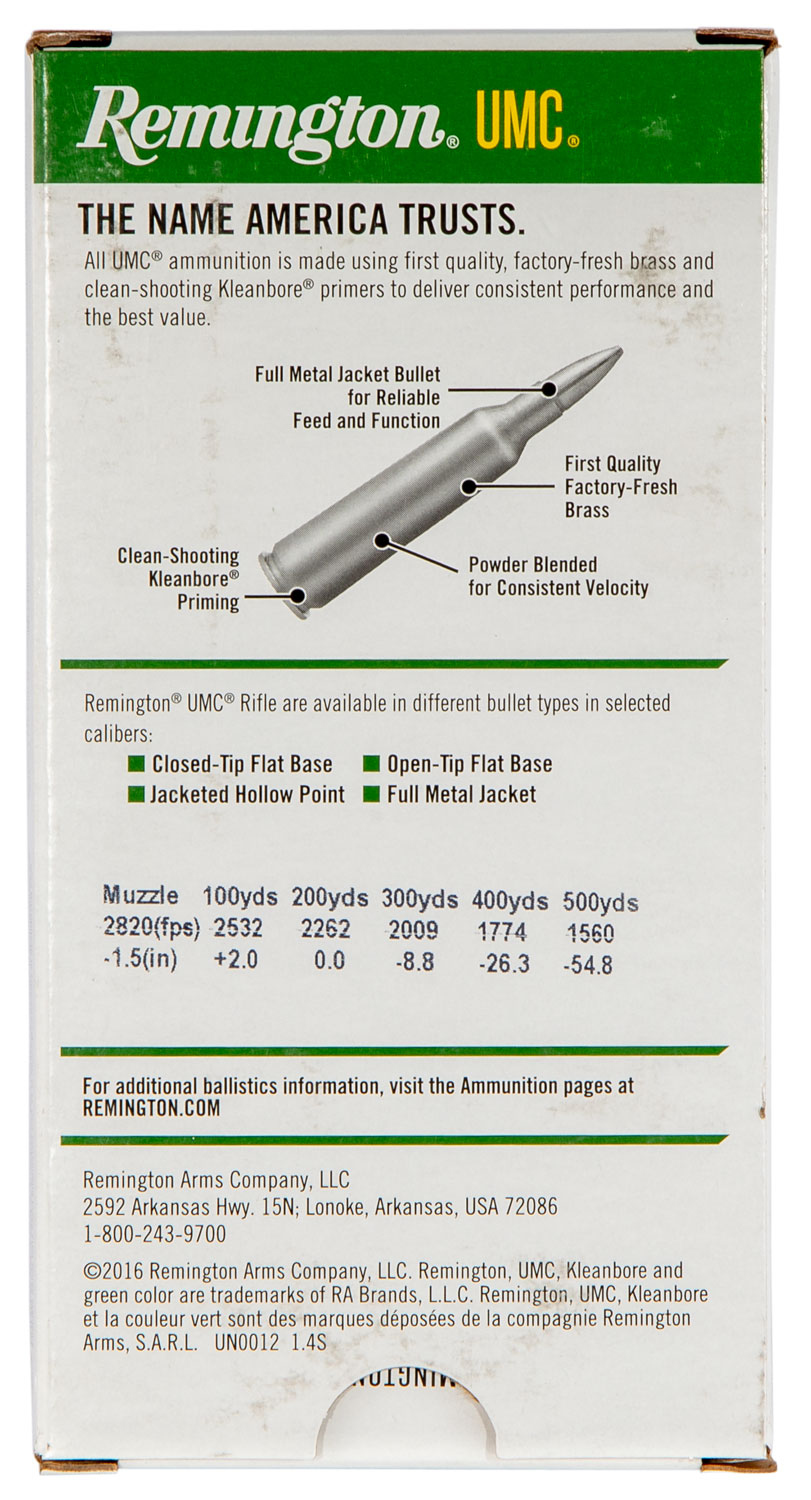 Remington Ammunition 23715 UMC 308Win 150gr Full Metal Jacket 20 Per Box/10 Case