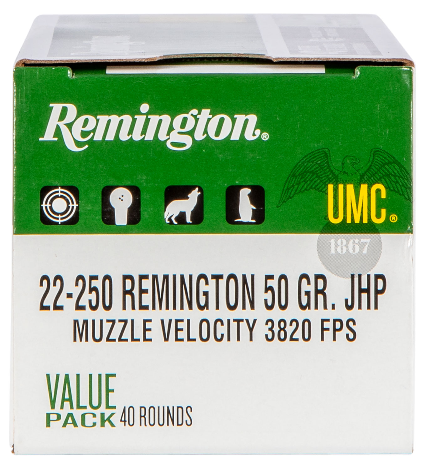 Remington Ammunition 23783 UMC Value Pack 22-250Rem 50gr Jacketed Hollow Point 40 Per Box/10 Case