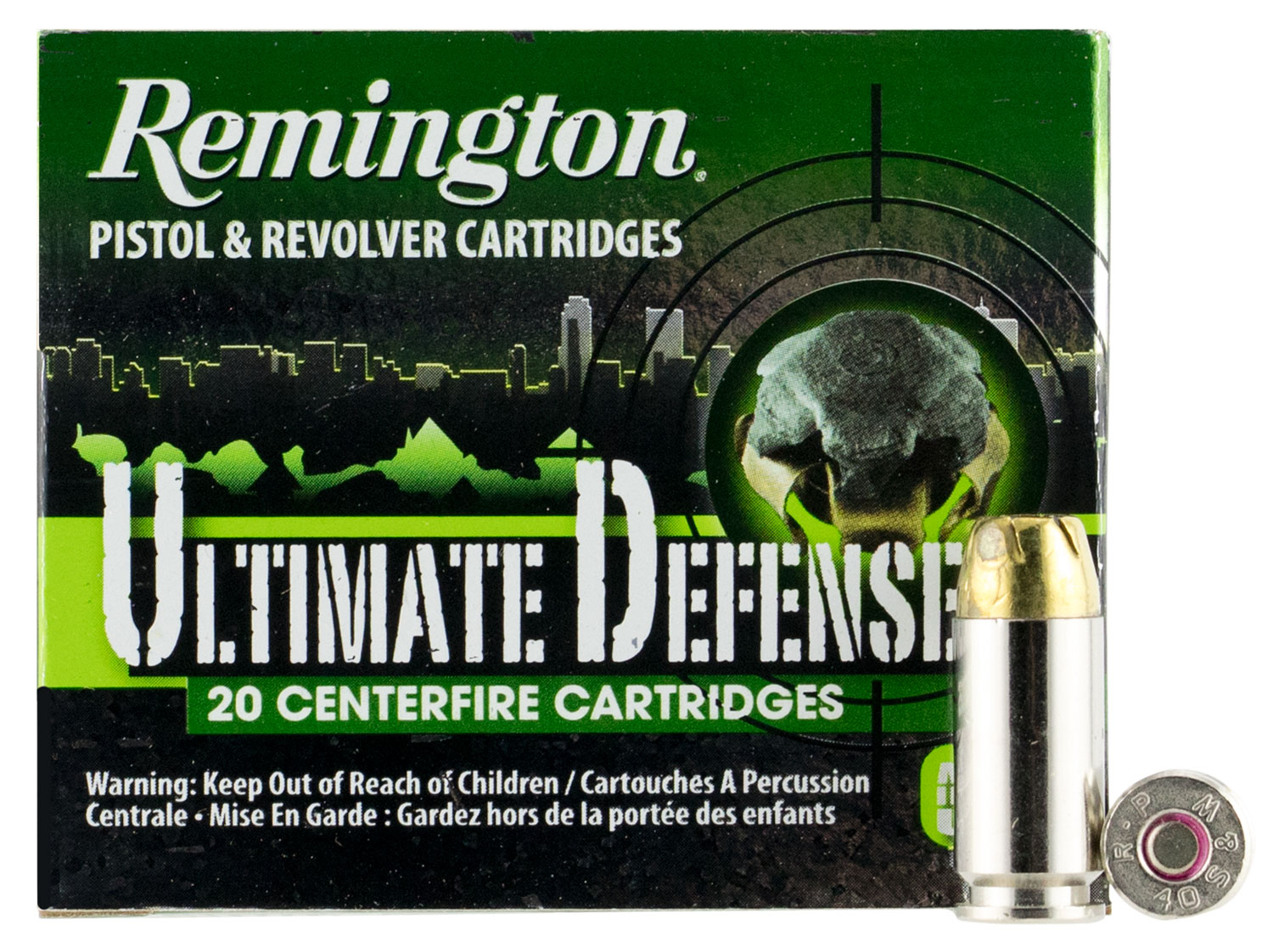 Remington Ammunition 28939 Ultimate Defense Full Size Handgun 40S&W 180gr Brass Jacketed Hollow Point 20 Per Box/25 Case