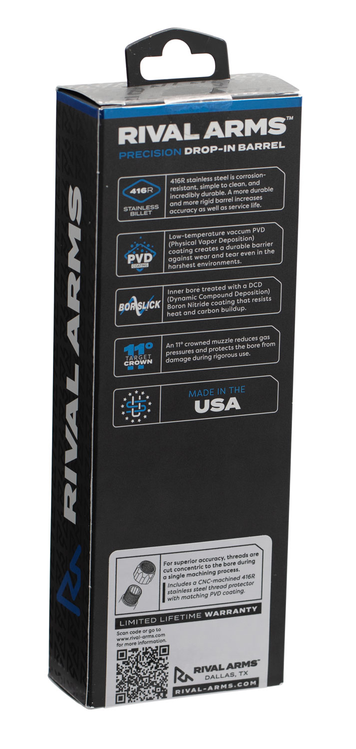 Rival Arms RA20G102A Precision Drop-In Barrel 9mm Luger 4.49″ Black PVD Finish 416R Stainless Steel Material with Fluting & Treading for Glock 17 Gen3-4