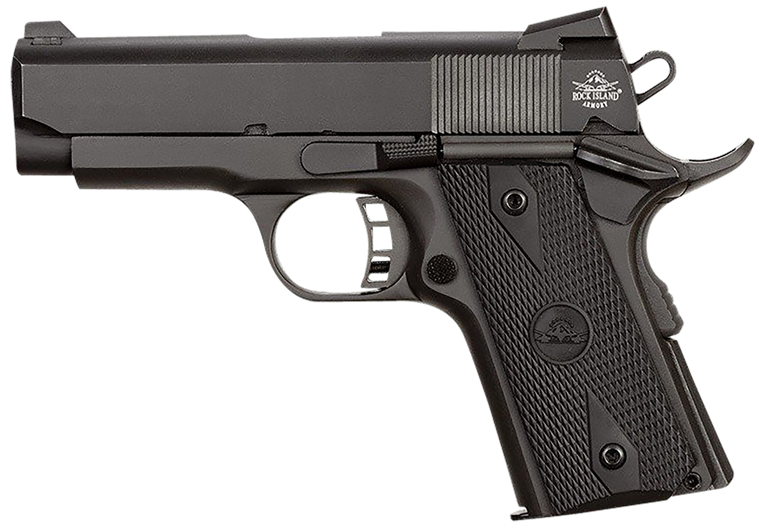 Rock Island 51429 Rock Standard CS 45 ACP Caliber with 3.60″ Barrel, 7+1 Capacity, Overall Black Parkerized Finish Steel, Beavertail Frame, Serrated Slide & Black Rubber Grip
