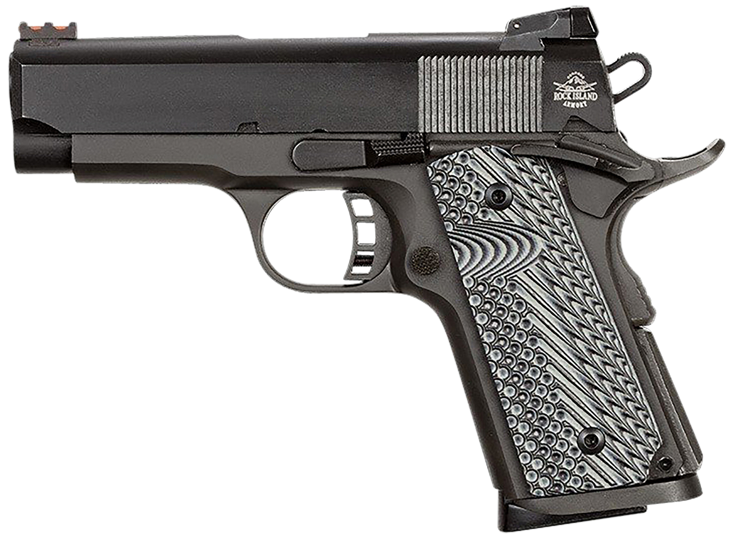 Rock Island 51585 Rock Ultra CS-L 45 ACP Caliber with 3.60″ Barrel, 7+1 Capacity, Black Anodized Finish Aluminum Beavertail Frame, Serrated Black Parkerized Steel Slide & Black/Gray G10 Grip