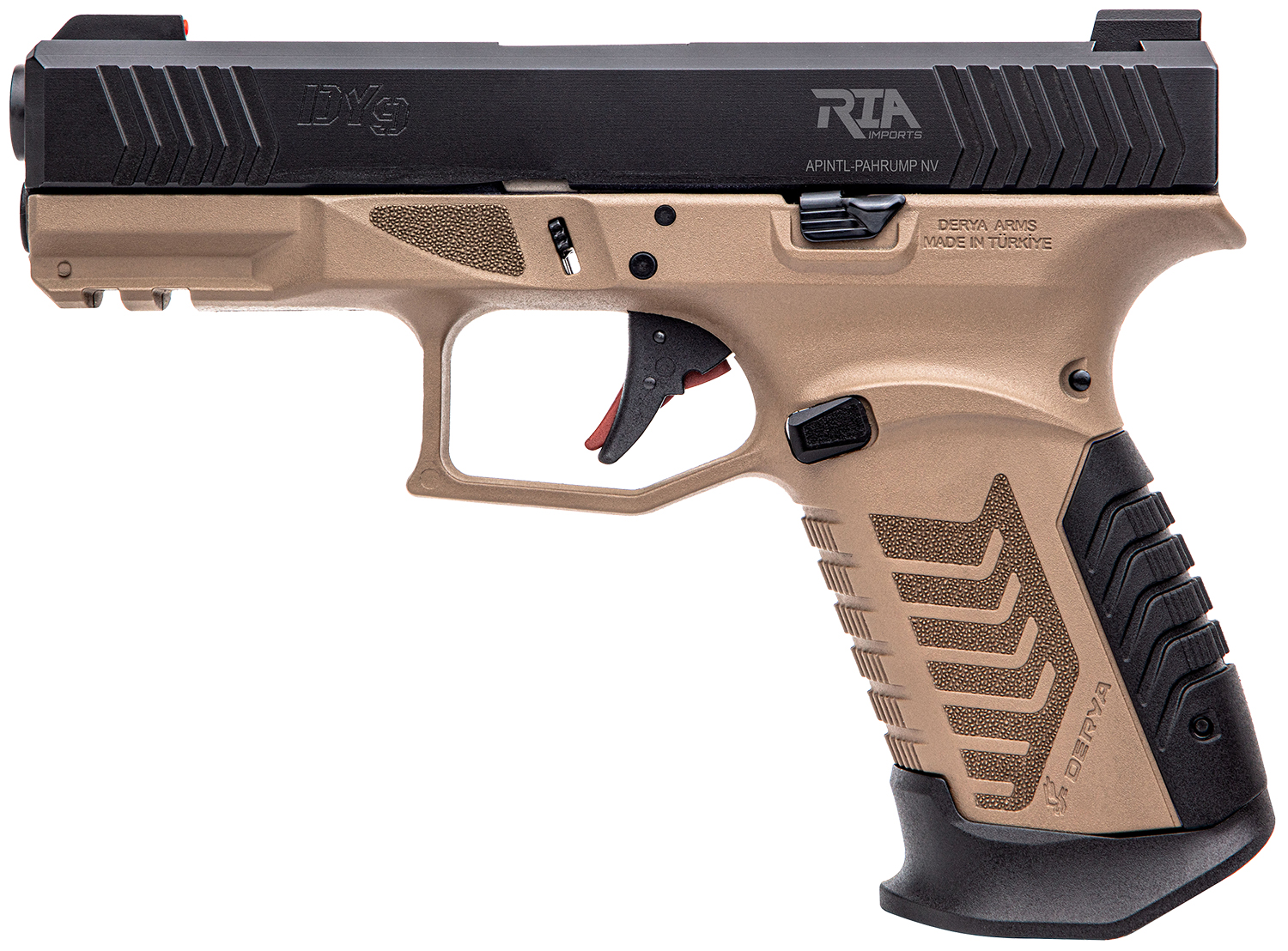 Rock Island DY924 DY9 9mm Luger 15+1 3.86″ Black Steel Barrel, Black Melonite Optic Cut/Serrated Steel Slide, Flat Dark Earth Polymer Frame w/Picatinny Rail, Black Interchangeable Backstrap Grip