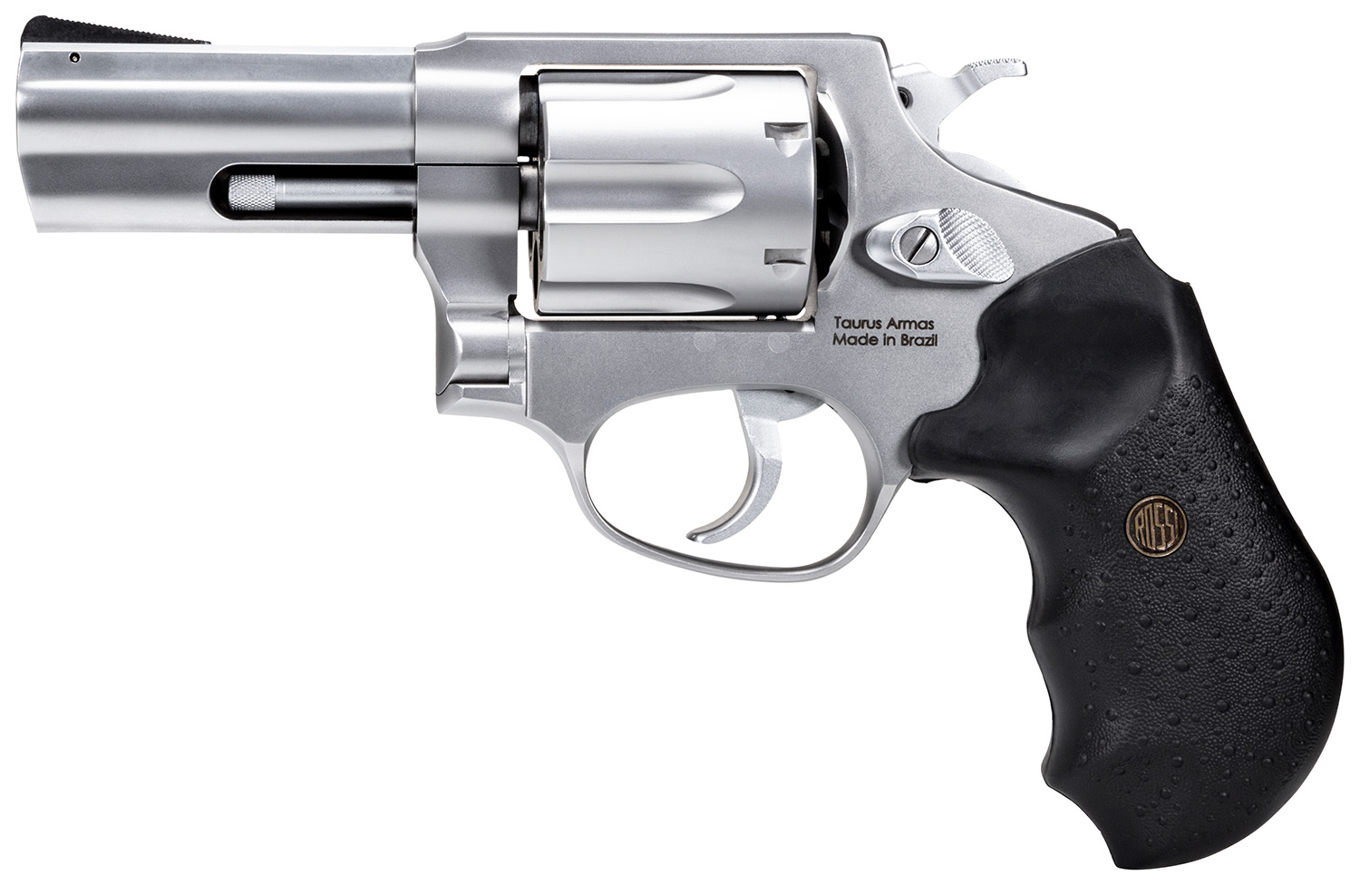 Rossi 2RP639 RP63 Small Frame 357 Mag 6 Shot, 3″ Satin Stainless Steel Barrel, Cylinder & Frame, Black Textured Rubber Grip, Hammer Block Safety, Exposed Hammer