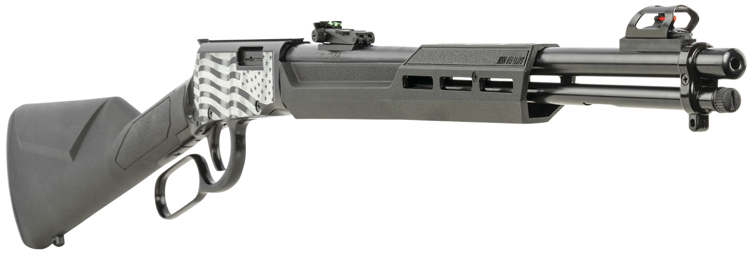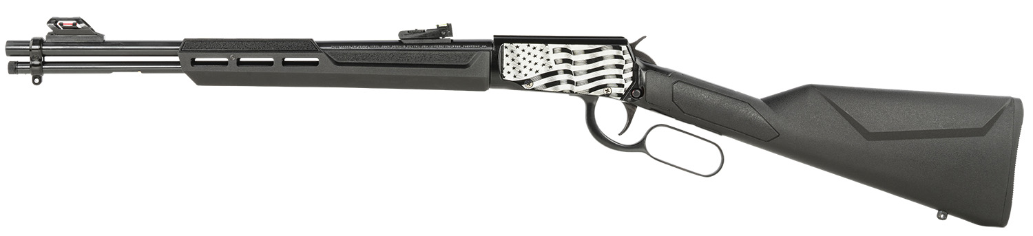 Rossi RL22181SYEN11 Rio Bravo Lever Action 22 LR 15+1 18″ Round Barrel, Black, Polished US Flag Engraved Rec, Synthetic Stock, Fiber Optic Sights
