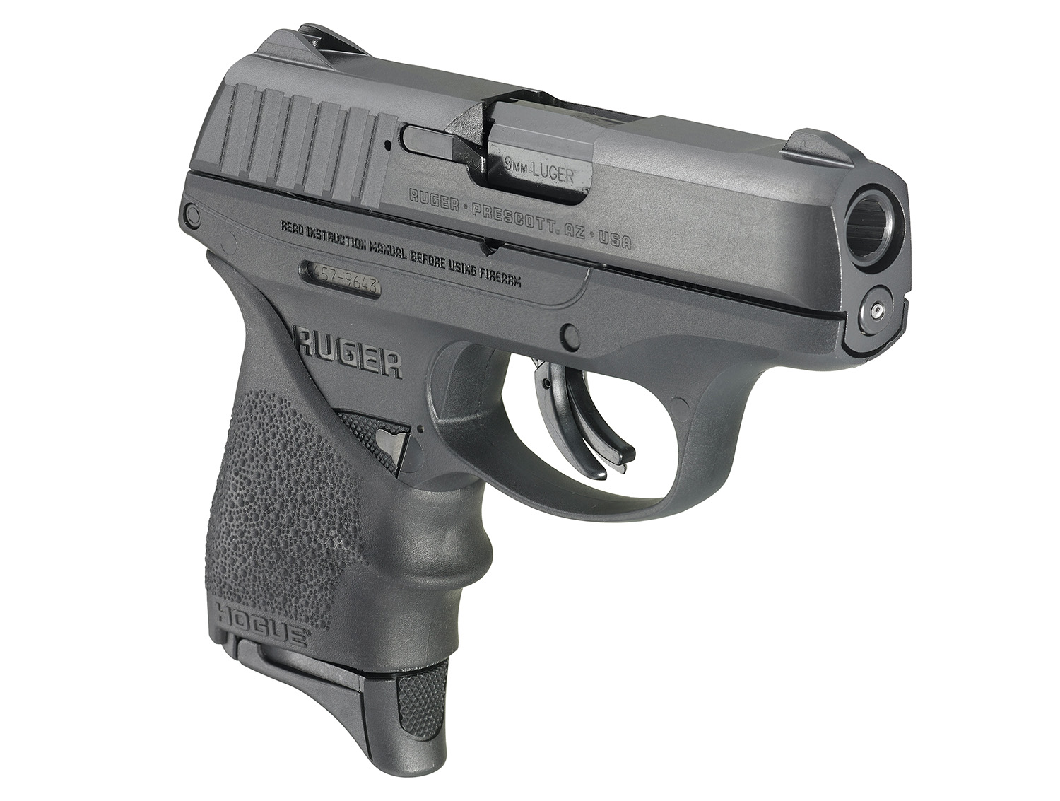 Ruger 13211 EC9s 9mm Luger Caliber with 3.50″ Barrel, 7+1 Capacity, Black Finish Frame, Serrated Black Oxide Steel Slide & Hogue Beavertail Grip Sleeve Grip