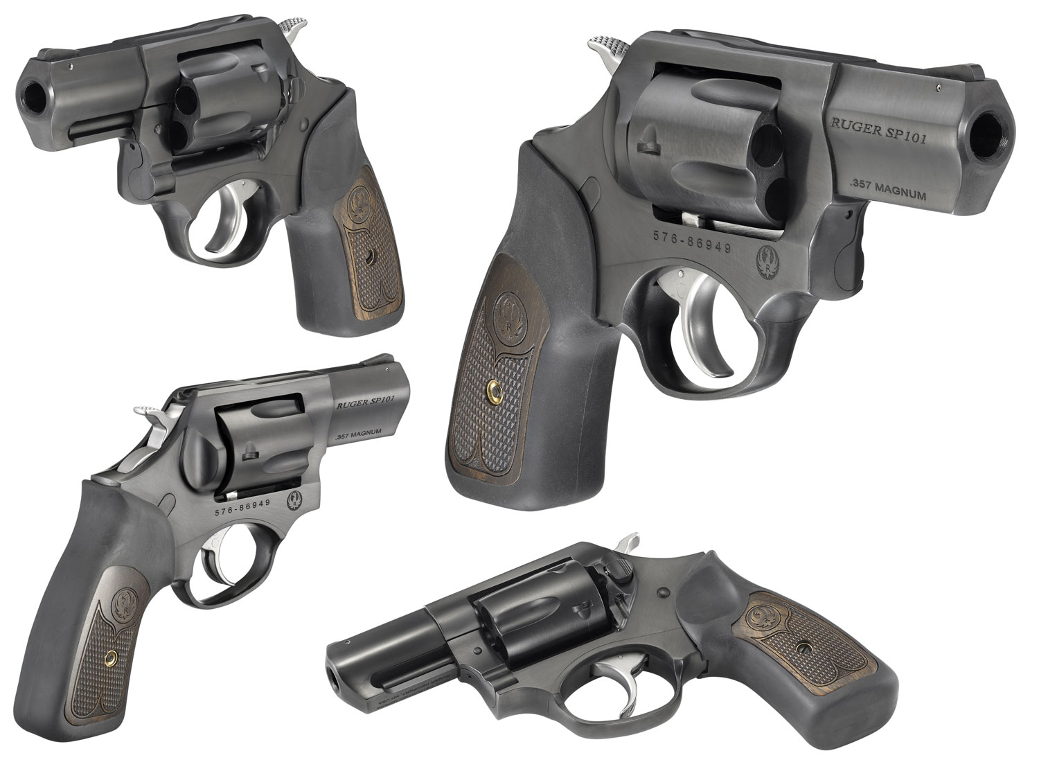 Ruger 15702 SP101 357 Mag 5rd 2.25″ Blued Steel Barrel, Cylinder & Frame, Black Rubber w/Wood Insert Grip, Transfer Bar Safety, Exposed Hammer