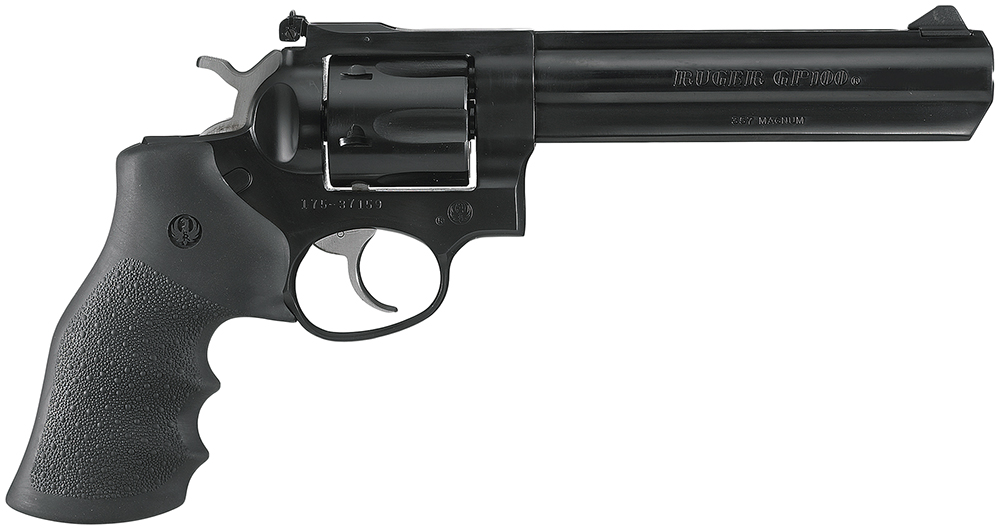 Ruger 1704 GP100 Medium Frame 357 Mag 6rd, 6″ Blued Steel Barrel, Cylinder & Frame, Black Hogue Monogrip, Exposed Hammer