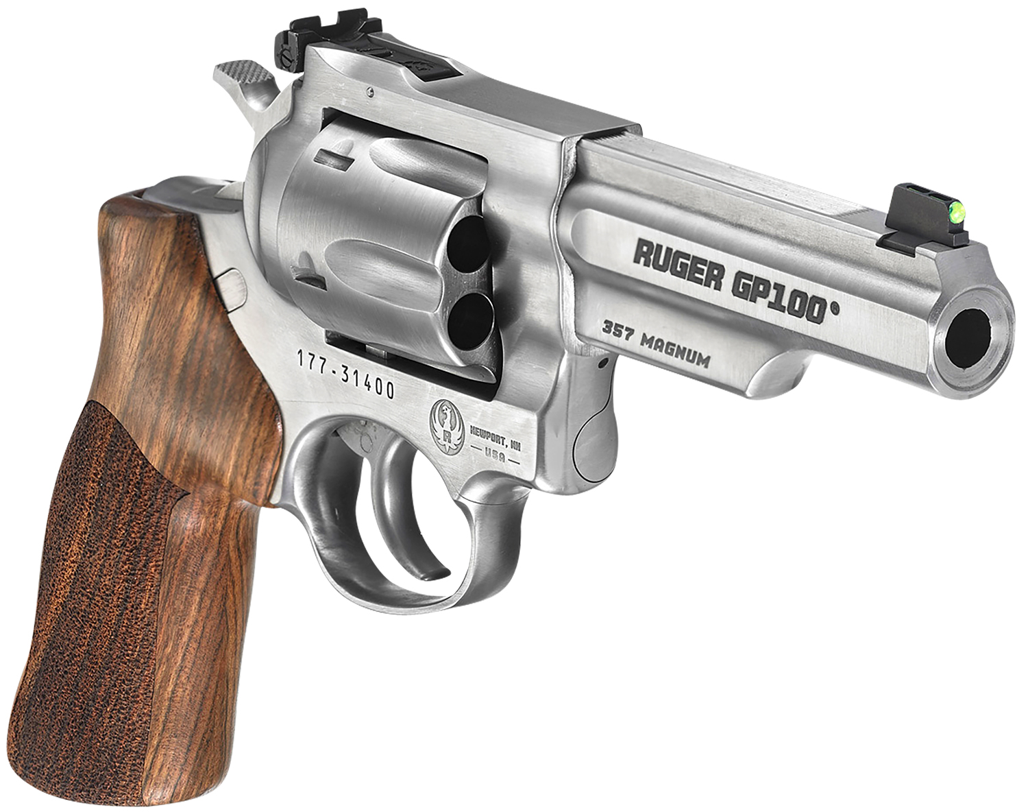 Ruger 1755 GP100 Match Champion Medium Frame 357 Mag 6rd 4.20″ Satin Stainless Half-Lug Barrel, Cylinder & Frame, Hogue Stippled Hardwood Grip, Transfer Bar Safety