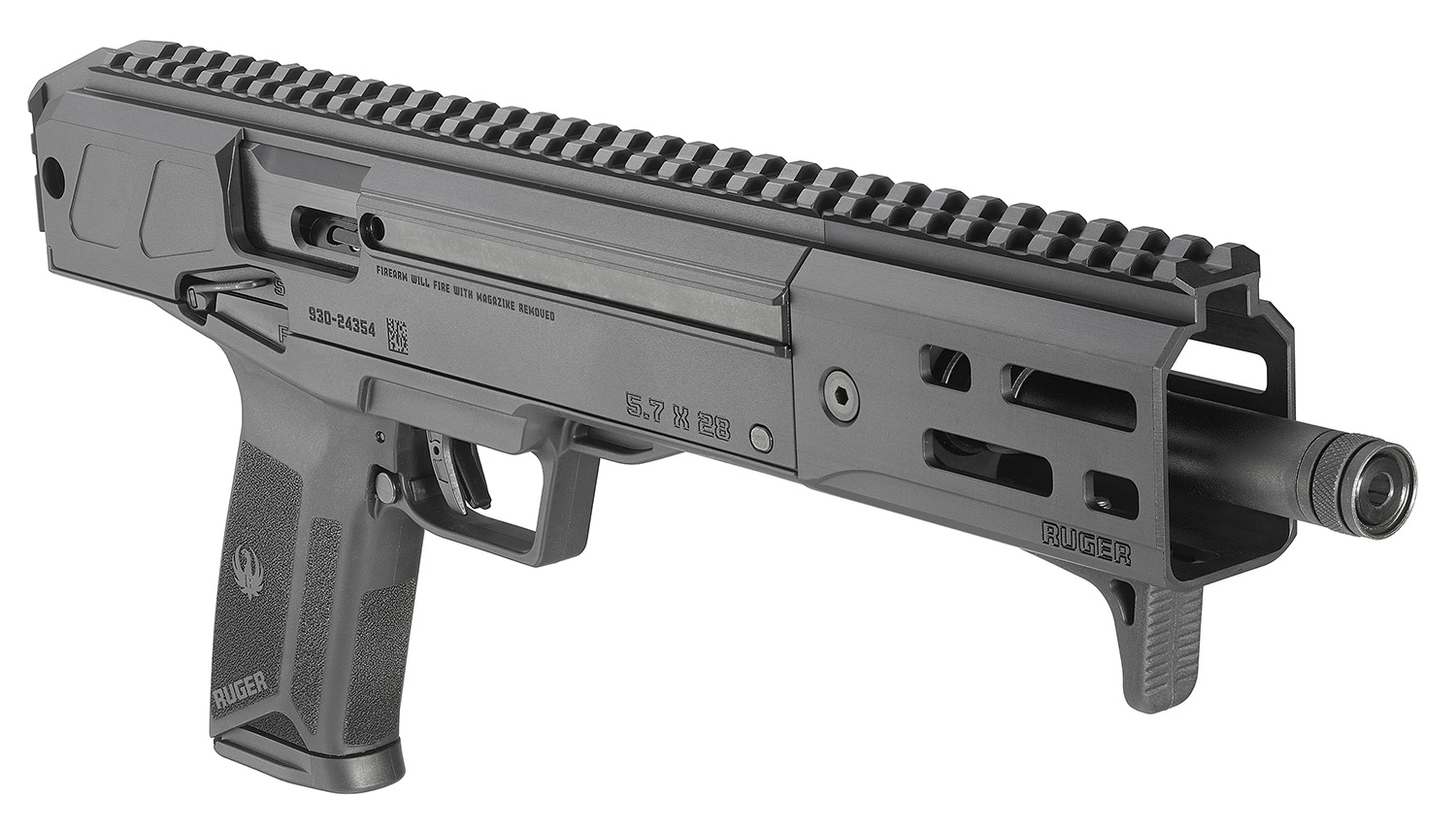 Ruger 19303 LC Charger 5.7x28mm 20+1 10.30″ Black Nitride Steel Threaded Barrel, M-LOK Handguards, Black Hard Coat Anodized Picatinny Rail Receiver, Black Polymer Grips, Ambidextrous