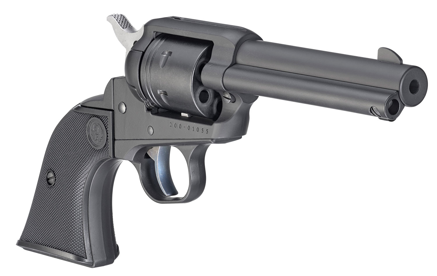 Ruger 2002 Wrangler 22 LR 6 Shot 4.62″ Black Cerakote, Black Cerakote Aluminum Frame & Cylinder Black Checkered Polymer Grips