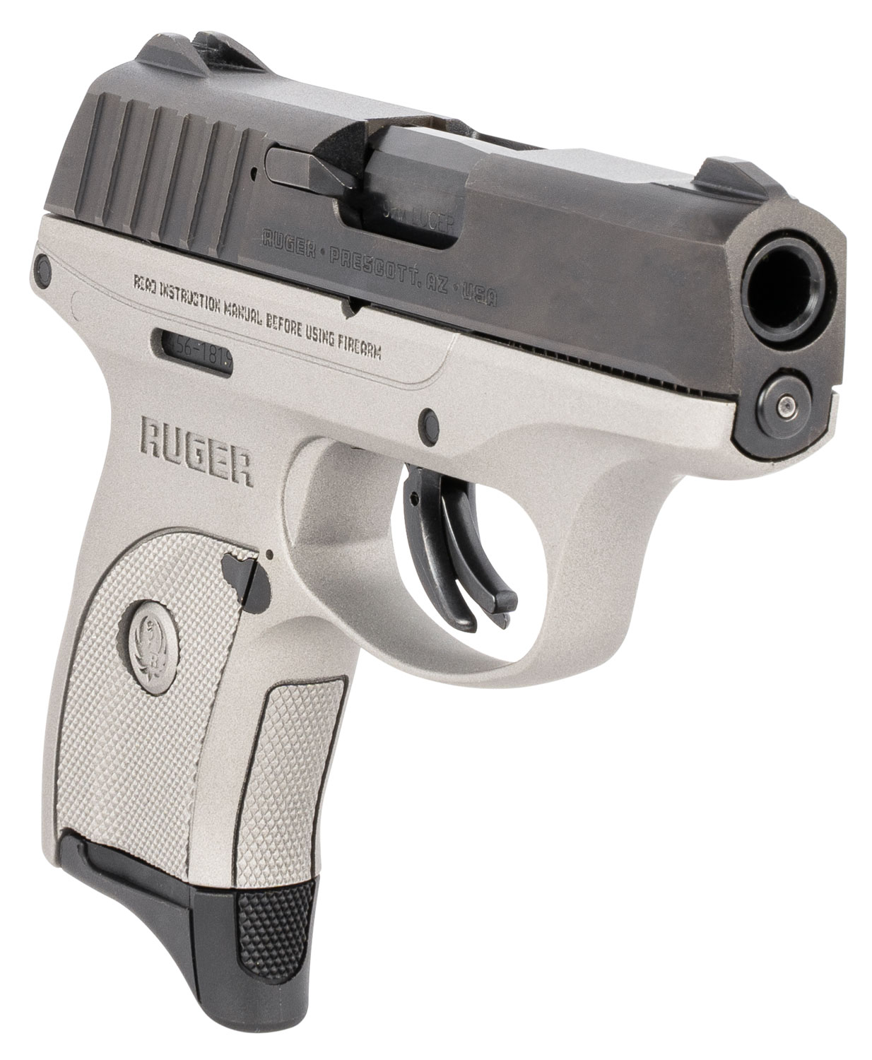 Ruger 3290 EC9s 9mm Luger Black Oxide Alloy Steel 3.12″ Barrel 7+1, Savage Silver Cerakote Glass-Filled Nylon Frame, Black Oxide Hardened Alloy Steel Slide, Manual Safety