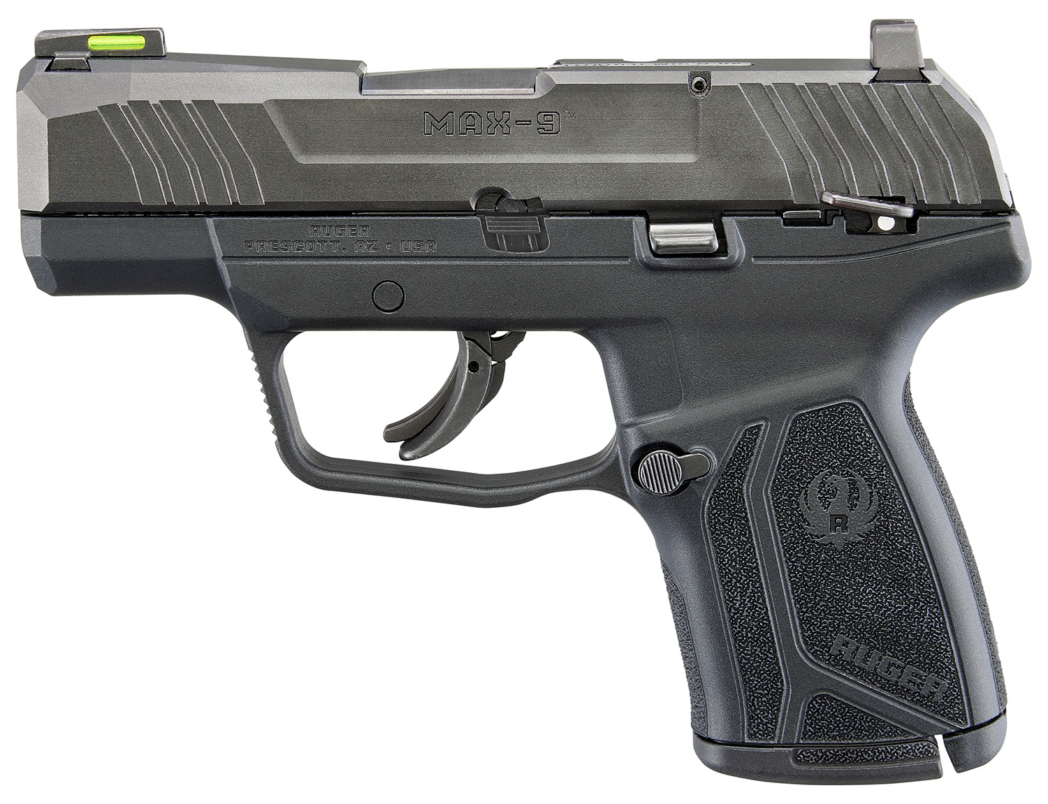 Ruger 3518 Max-9 *CA Compliant Compact 9mm Luger 10+1 3.20″ Black Oxide Steel Barrel, Black Oxide Serrated Slide, Black Frame & Black Nylon Grips