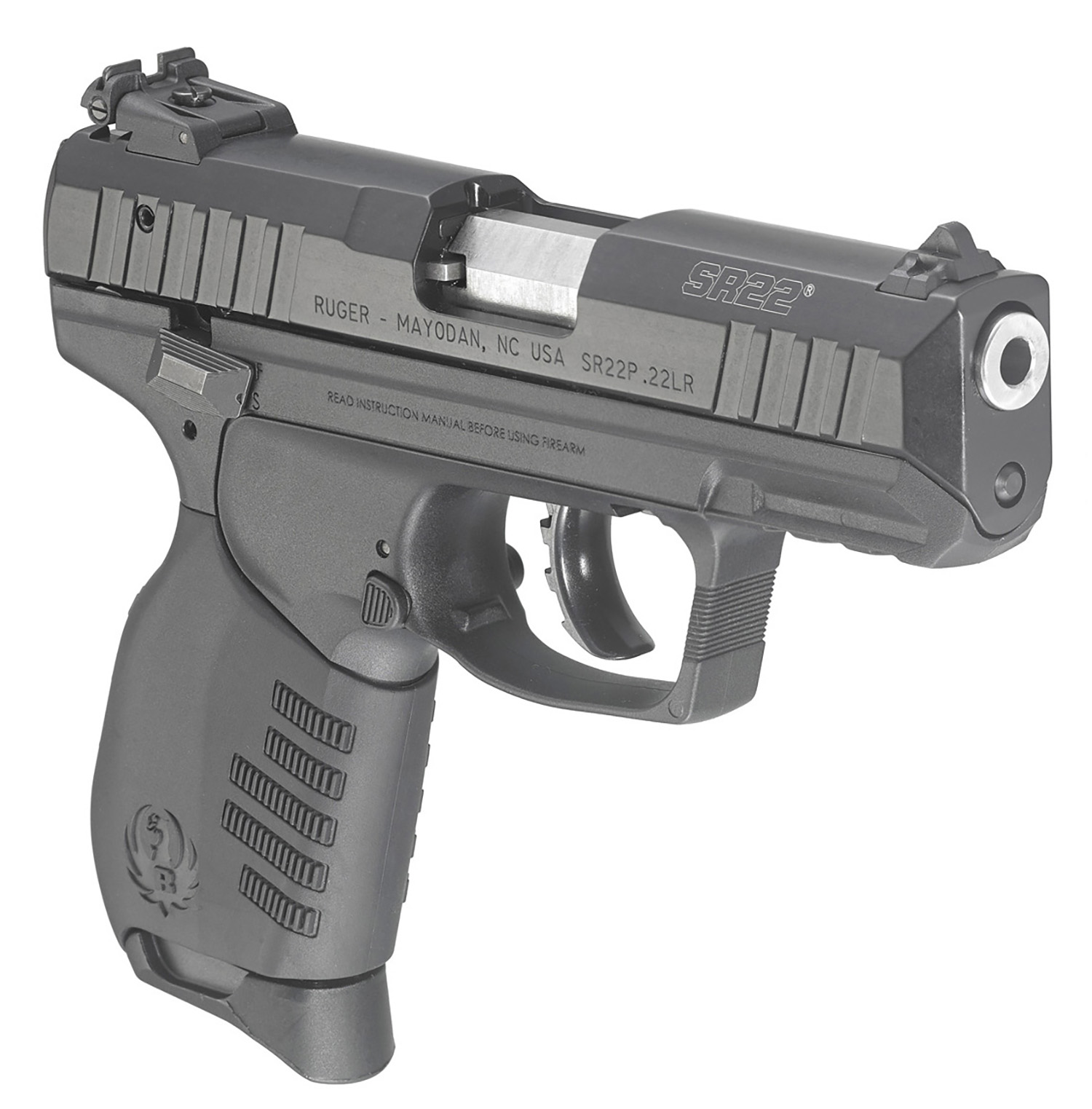 Ruger 3657 SR22 *CA Compliant 22 LR 10+1 3.50″ Satin Stainless Steel Barrel, Black Anodized Serrated/Aluminum Slide, Black Polymer Frame w/Picatinny Rail Frame, Black Polymer Grips