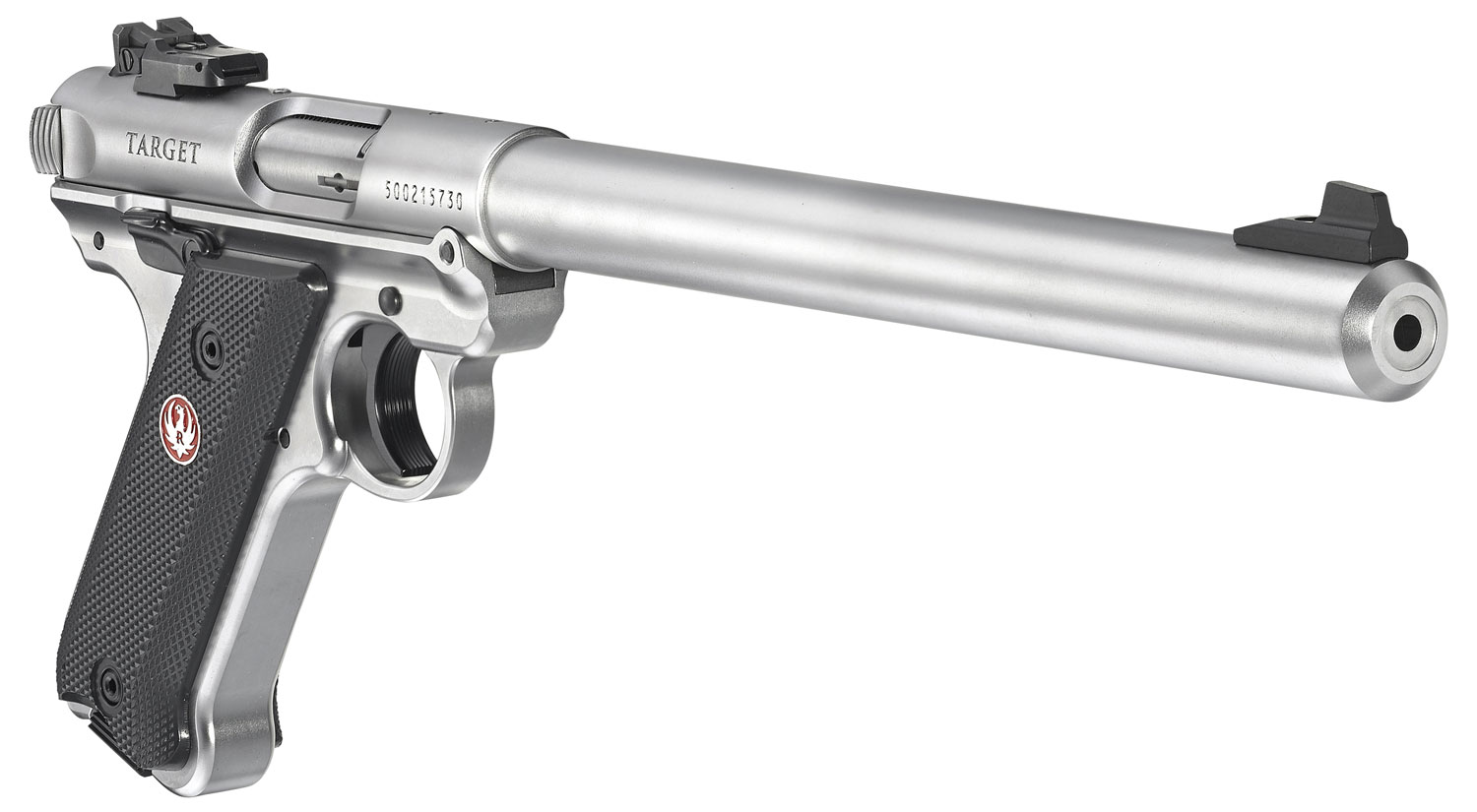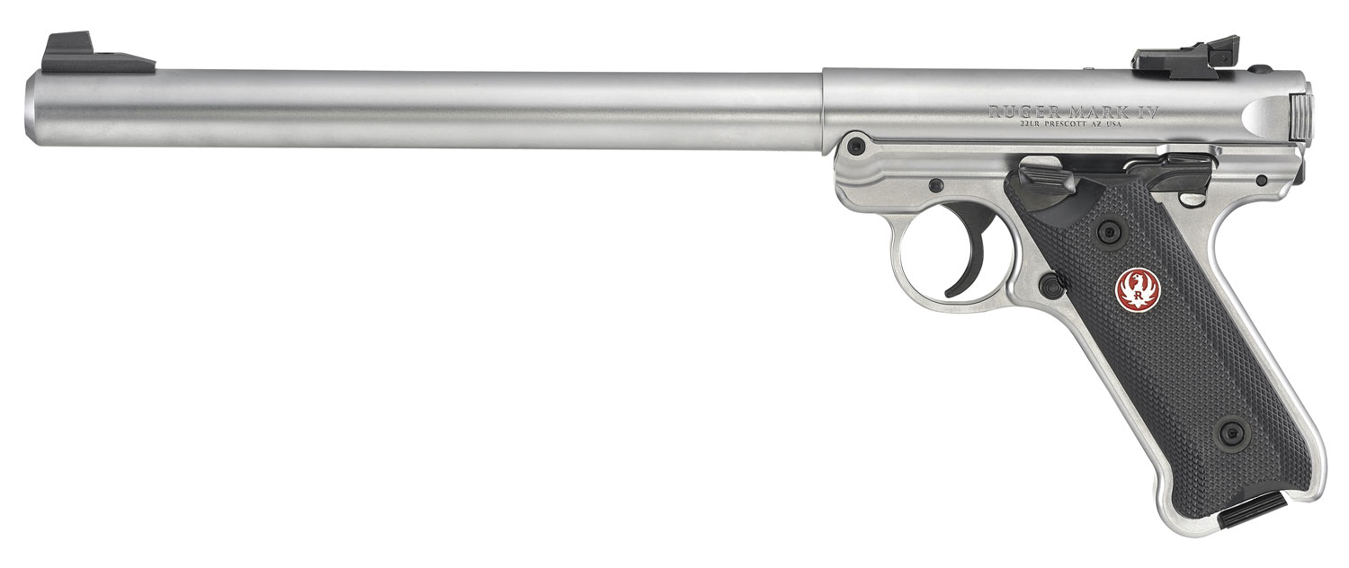 Ruger 40174 Mark IV Target 22 LR 10+1 10″ Overall Satin Stainless Steel Bull Barrel, Slide & Satin Aluminum Frame, Black Checkered Polymer Grips