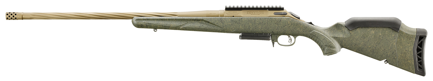 Ruger 46945 American Predator Gen II 300 Win Mag 3+1 22″ Burnt Bronze Cerakote Spiral Threaded Barrel, Picatinny Rail Steel Receiver, Green Splatter Adjustable Synthetic Stock
