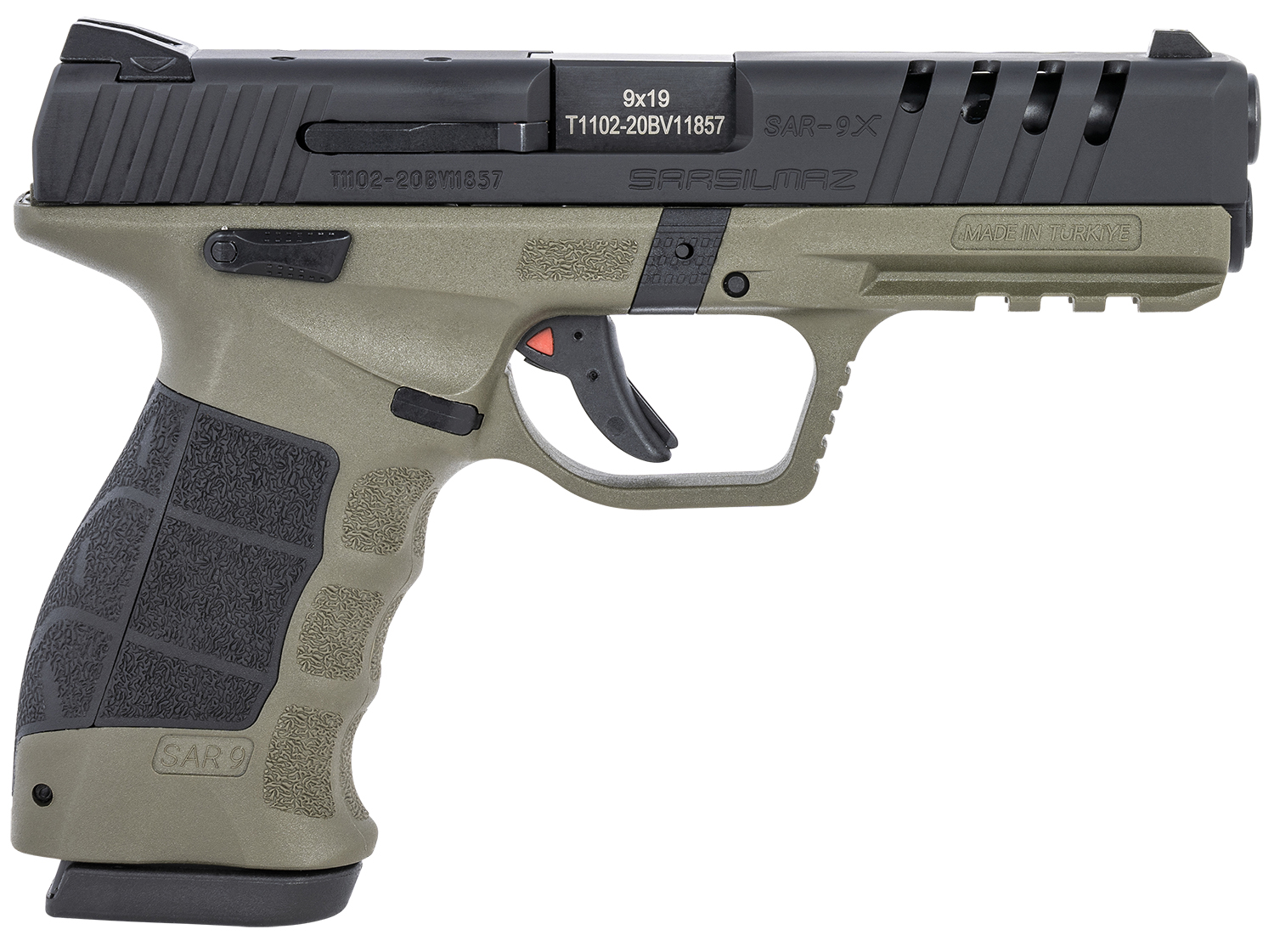 Sar USA SAR9XRDODBL SAR9X 9mm Luger 4.40″ 17+1, 19+1 (2) OD Green Cerakote Polymer Frame Black Cerakote Steel Slide Black Interchangeable Backstrap Grip