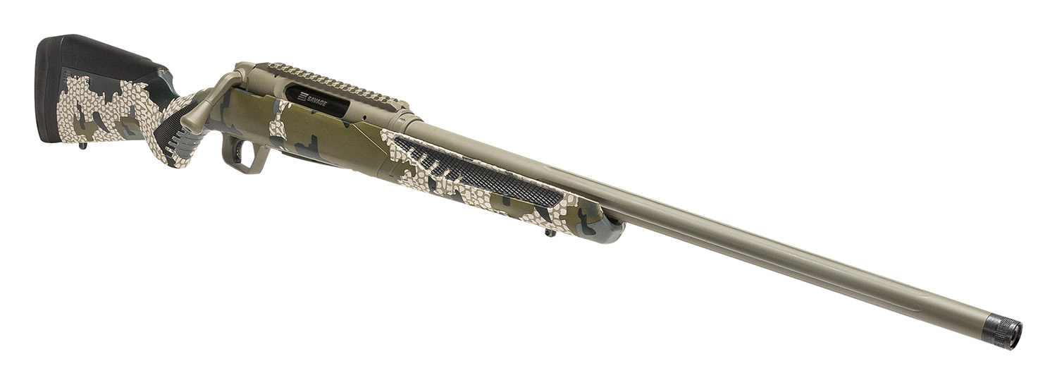 Savage Arms 58028 Impulse Big Game 7mm PRC 2+1 22″ Threaded, Hazel Green Cerakote Barrel/Rec, Woodland Camo Fixed AccuStock with AccuFit, Includes Detachable Box Mag