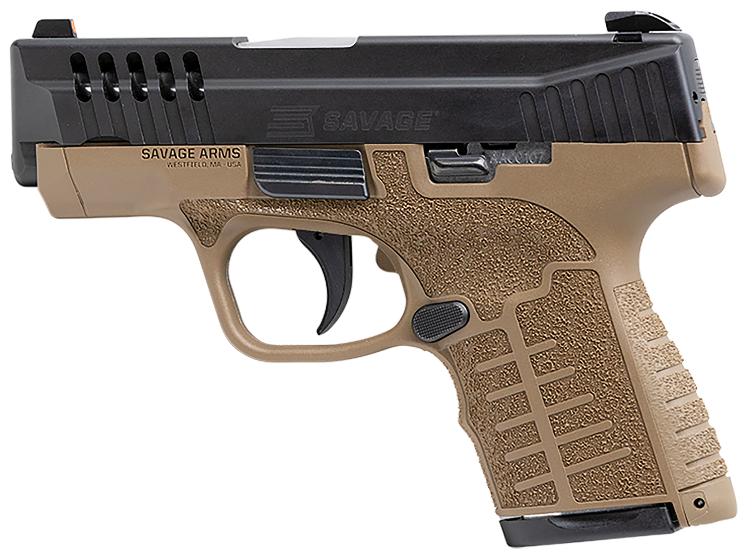 Savage Arms 67007 Stance 9mm Luger 7+1/8+1 3.2″ Barrel, Flat Dark Earth Polymer Frame, Serrated/Ported Black Nitride Slide, Interchangeable Backstrap, No Manual Safety, Night Sights
