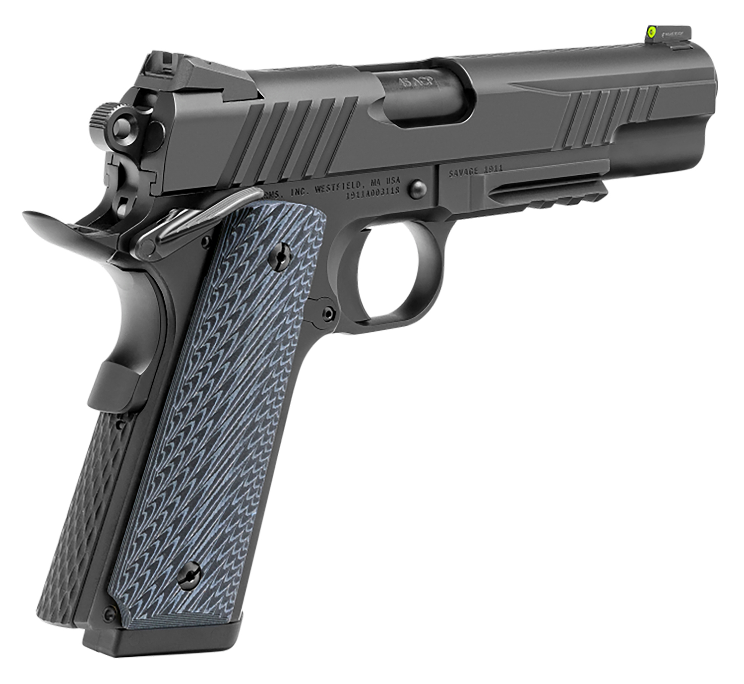 Savage Arms 67211 1911 Government 9mm Luger 10+1 5″ Black Stainless Steel Barrel. Black Nitride Serrated Stainless Steel Slide. Black Nitride Stainless Steel Frame w/Picatinny Rail, Black VZ Grip