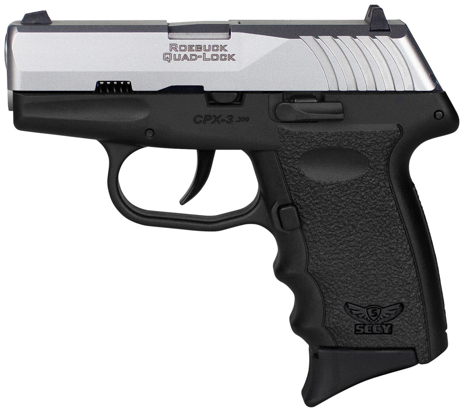 SCCY Industries CPX-3TTBK CPX-3 Sub-Compact Frame 380 ACP 10+1, 3.10″ Stainless Quadlock Barrel, Serrated Stainless Steel Slide, Black Polymer Frame w/Finger Grooves, No Safety, Right Hand