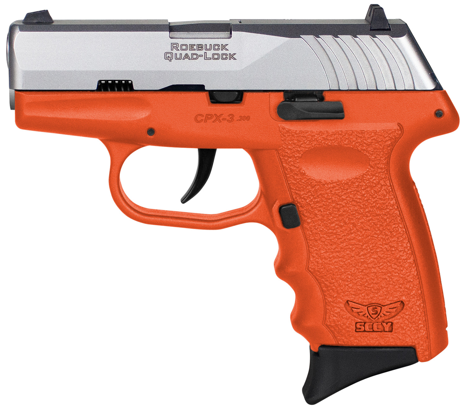 SCCY Industries CPX-3TTOR CPX-3 Sub-Compact Frame 380 ACP 10+1, 3.10″ Stainless Quadlock Barrel, Serrated Stainless Steel Slide, Orange Polymer Frame w/Finger Grooves, No Safety, Right Hand