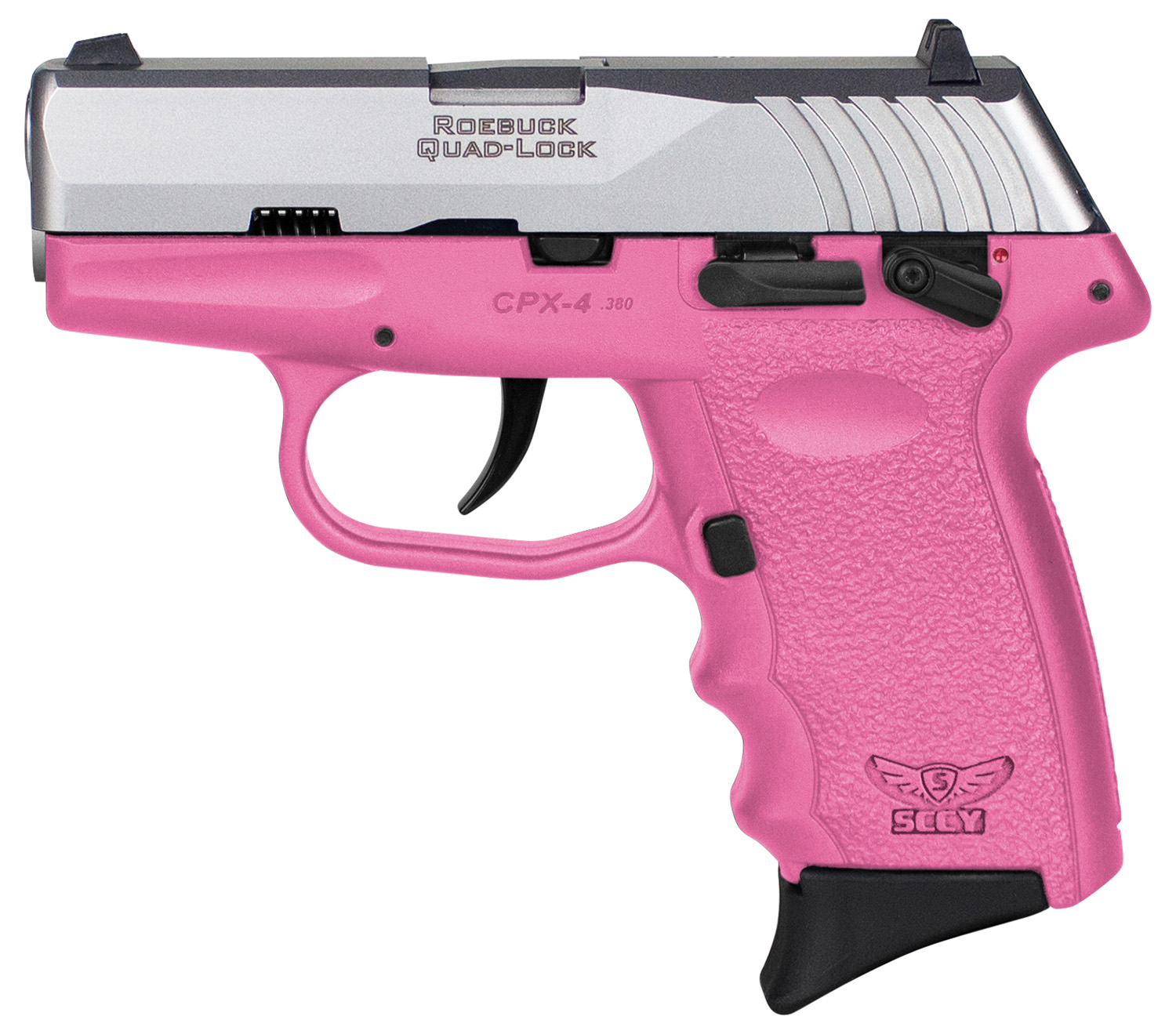 SCCY Industries CPX-4TTPK CPX-4 380 ACP 10+1 2.96″ Pink Polymer Serrated SS Slide Finger Grooved Pink Polymer Grip