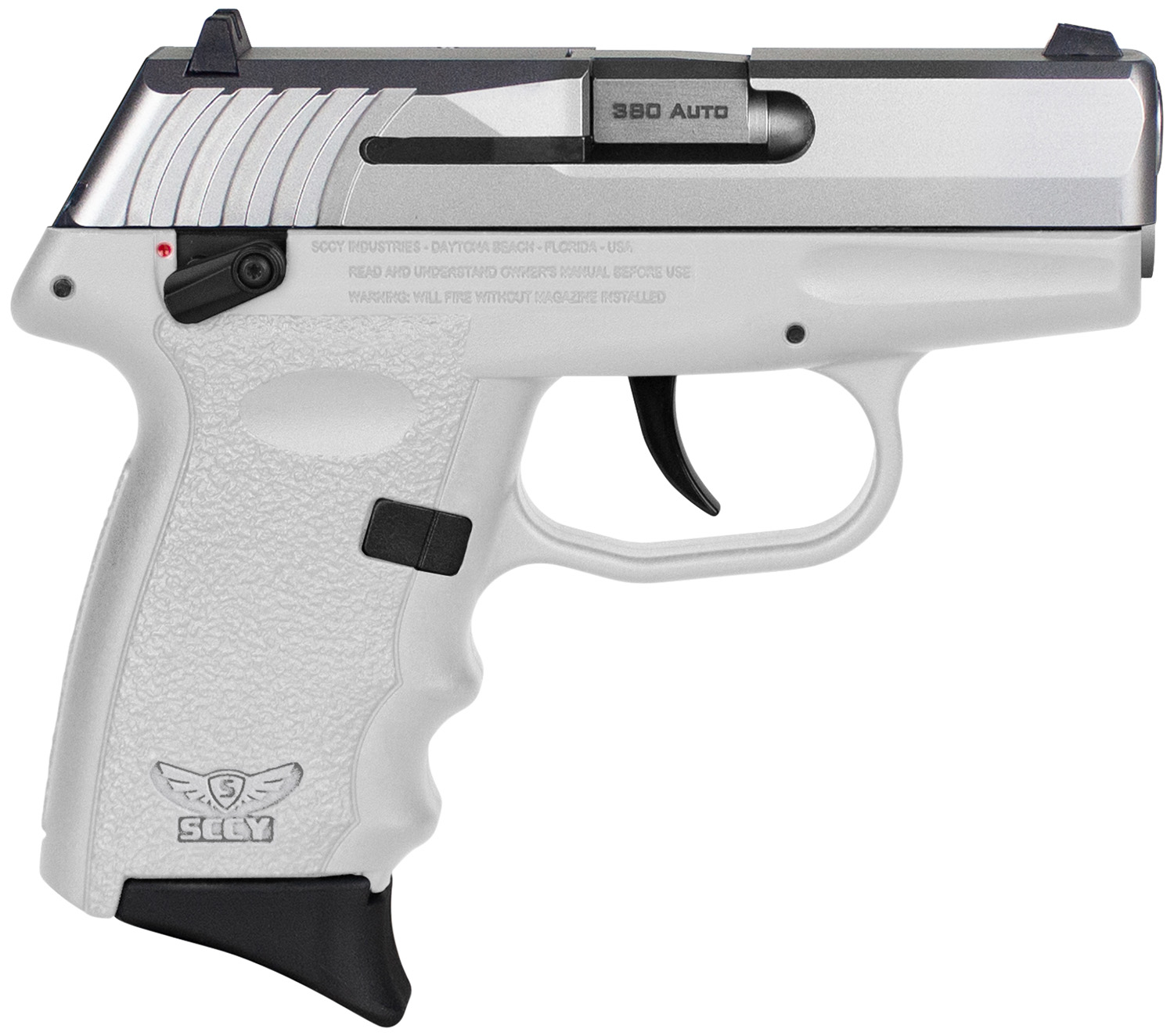 SCCY Industries CPX-4TTWT CPX-4 380 ACP 10+1 2.96″ White Polymer Serrated SS Slide Finger Grooved White Polymer Grip