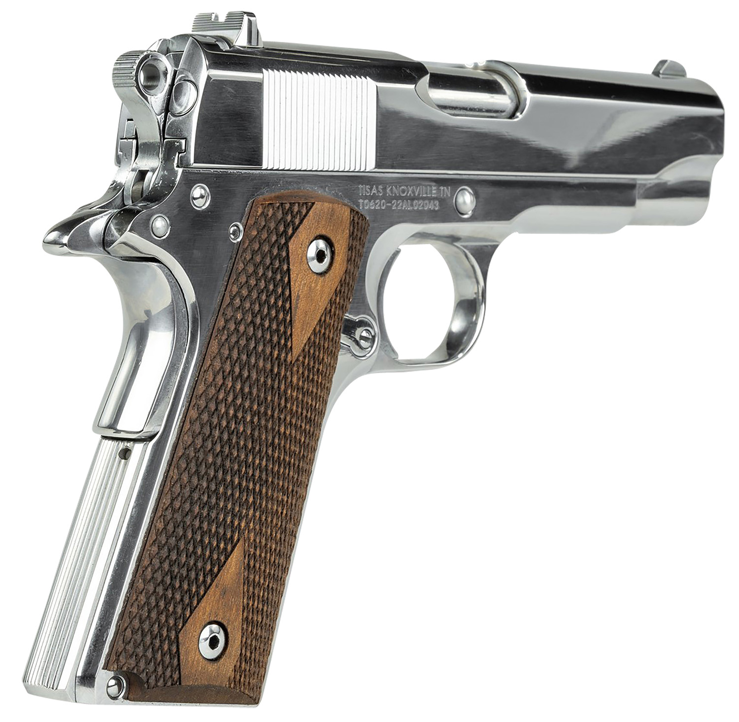 SDS Imports 10100112 1911A1 Desperado 38 Super/9mm Luger 9+1 4.25″ Hard Chrome Plated Barrel, High Polished Chomium Coated Serrated Steel Slide & Frame w/Beavertail, Checkered Wood Grips