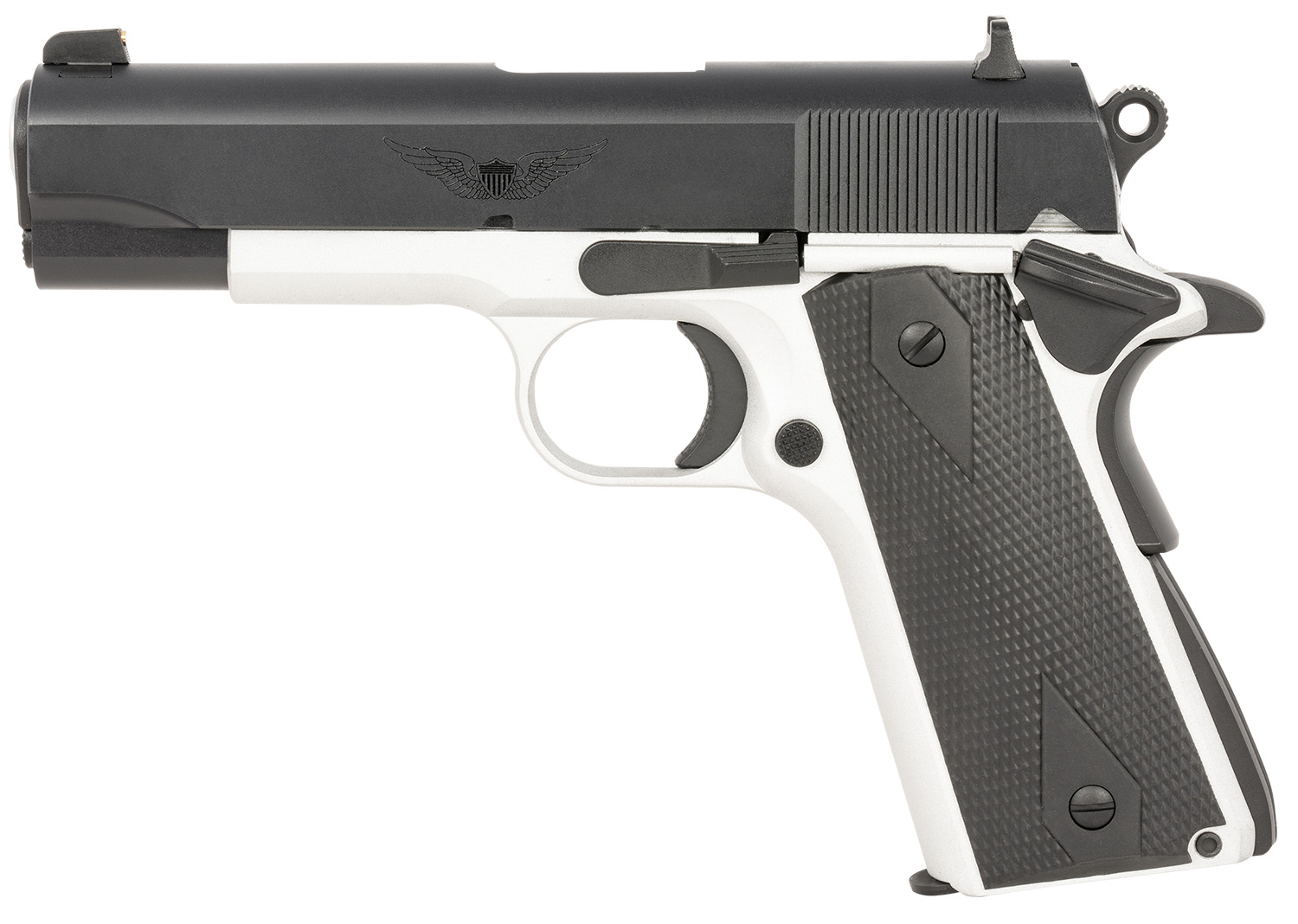 Tisas 10100128 1911 Aviator Carry Frame 45 ACP 7+1, 4.25″ Stainless Steel Barrel, Black Cerakote Serrated Carbon Steel Slide, Aluminum/Black Cerakote Aluminum Frame w/Beavertail, Black Overmolded Grip