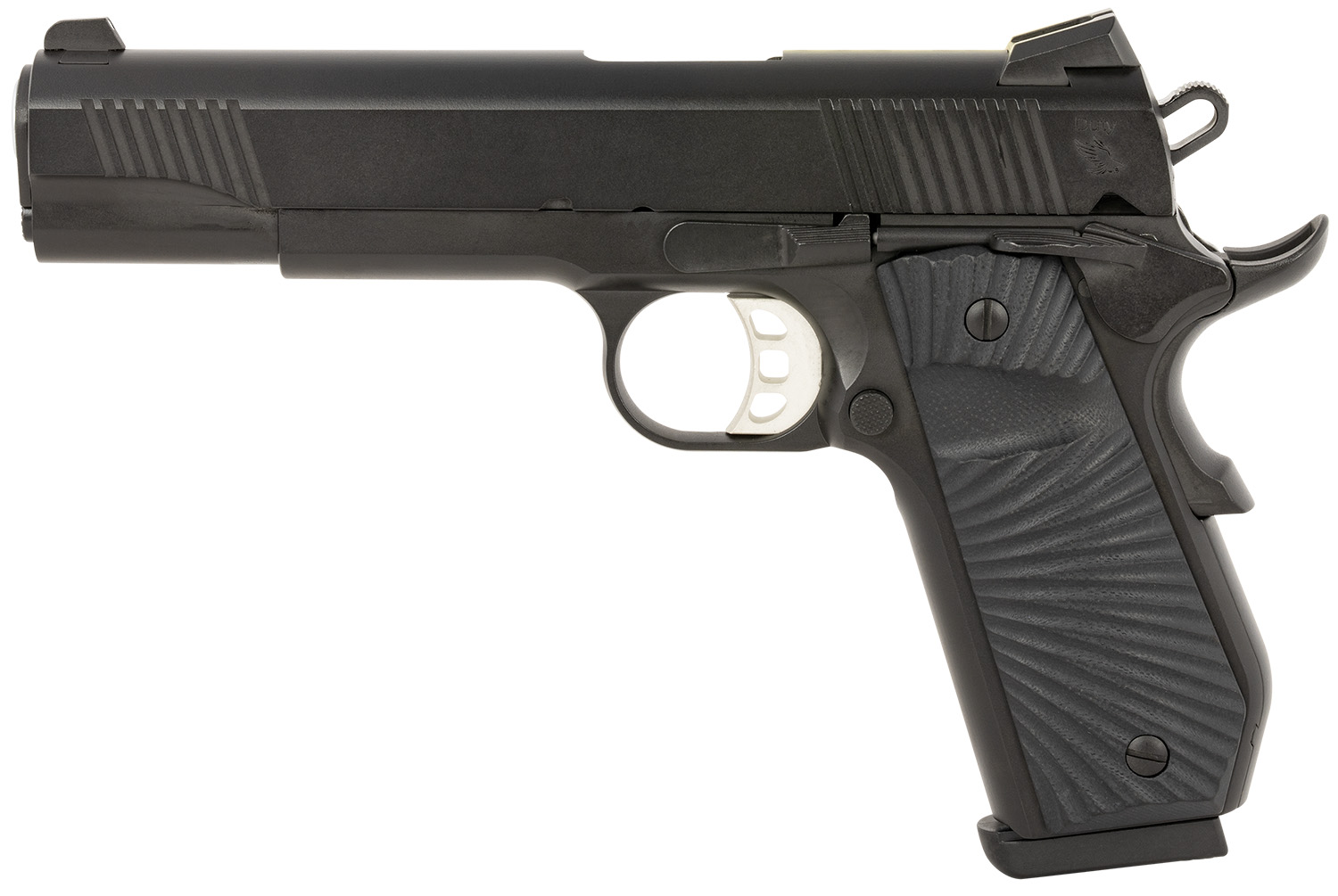 SDS Imports 10100502 1911 Stingray Carry 45 ACP 8+1 5″ Stainless Steel Barrel, Black Cerakote Serrated Slide, Black Cerakote Steel Frame w/Beavertail Black Sunburst G10 Grips