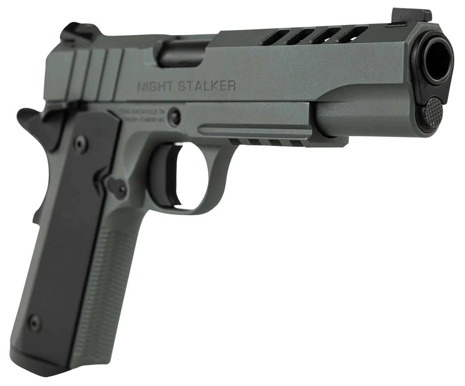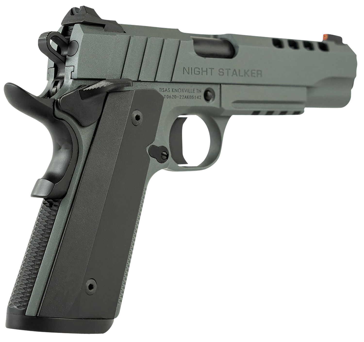 Tisas 10100512 1911 Night Stalker Full Size 45 ACP 8+1 5″ Black Steel Ramped Barrel, Platinum Grey Cerakote Ported/Serrated Slide & Frame w/Picatinny Rail & Beavertail, Ambidextrous