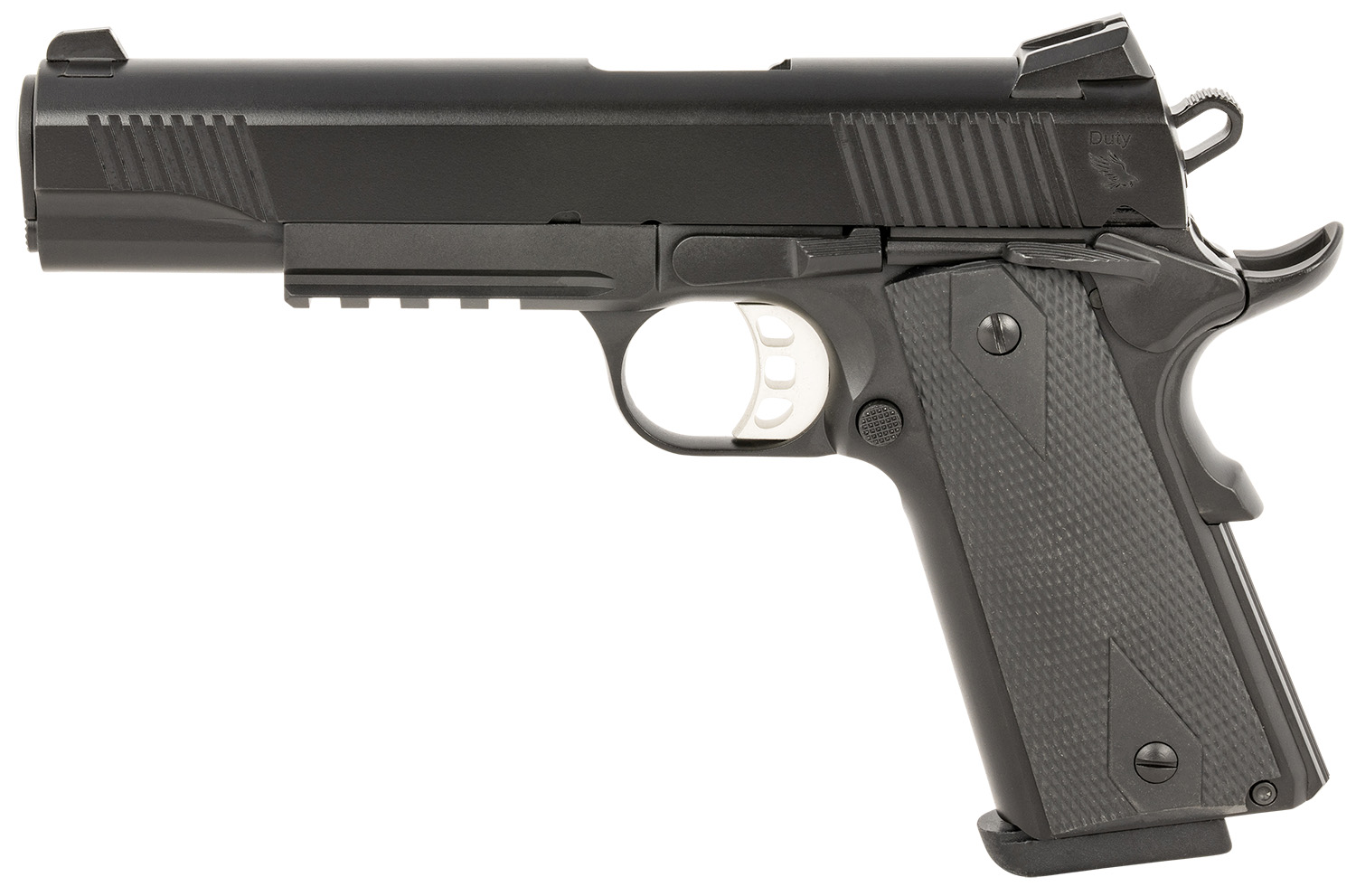 Tisas 10100531 1911 Duty 9mm Luger 9+1 5″ Black Steel Barrel, Black Serrated Steel Slide, Black Cerakote Steel Frame w/Accessory Rail & Beavertail, Ambidextrous