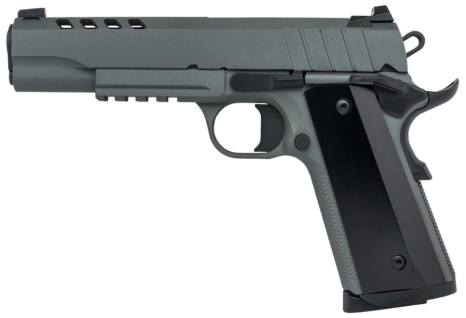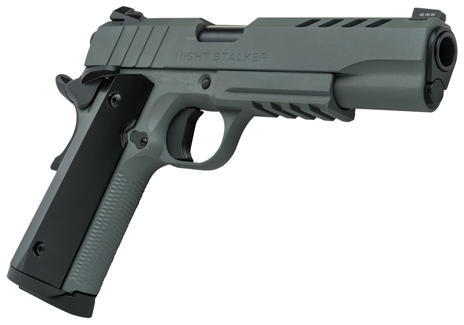 Tisas 10100538 1911 Night Stalker Full Size 9mm Auto 9+1 5″ Steel Barrel, Ported/Serrated Steel Slide, Platinum Grey Cerakote Steel Frame w/Beavertail & Picatinny Rail, Ambidextrous