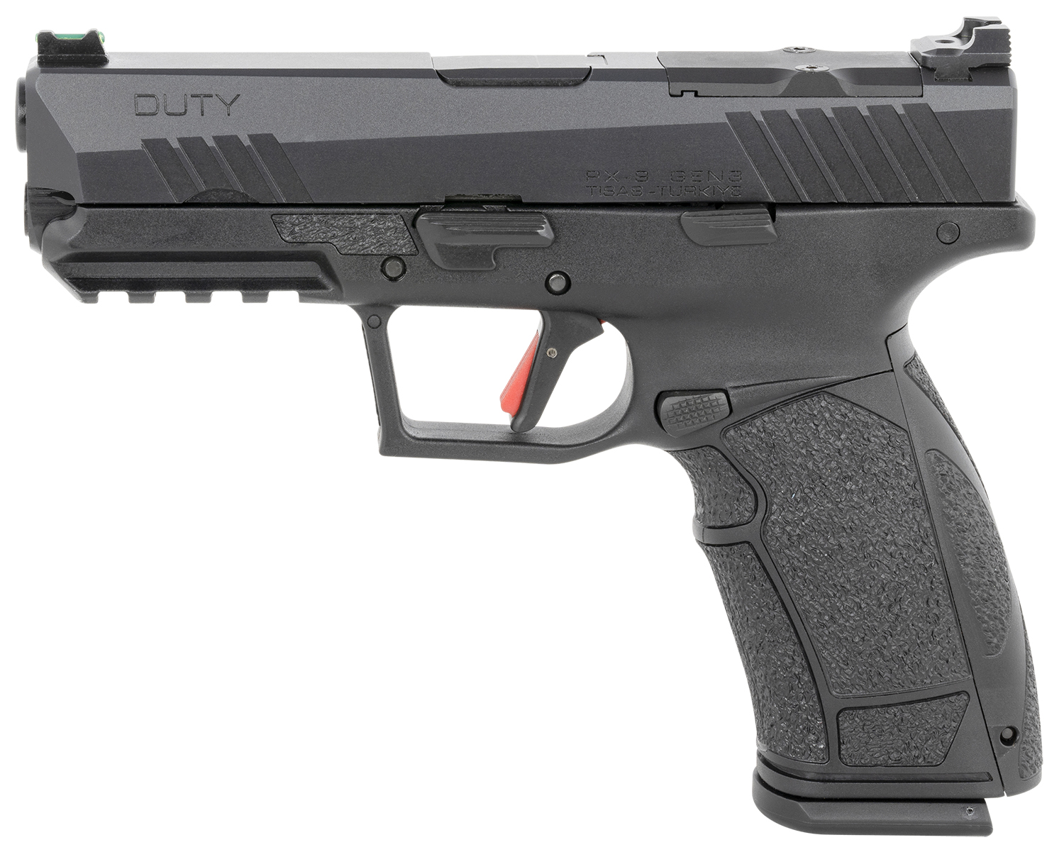 Tisas PX-9D PX-9 Gen3 Duty 9mm Luger Caliber with 4.11″ Barrel, 20+1 or 18+1 Capacity, Overall Black Finish, Picatinny Rail Frame, Serrated/Optic Cut Cerakote Slide & Interchangeable Backstrap Grip