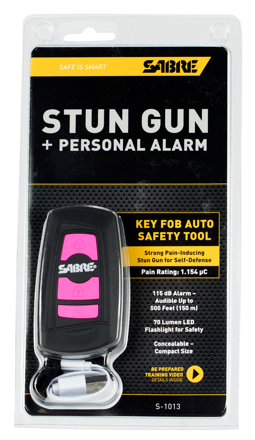 Sabre S1013PK 3-In-1 Stun Gun Safety Tool Pink Polymer 1.15 uC Pain Rating Features Built in Flashlight