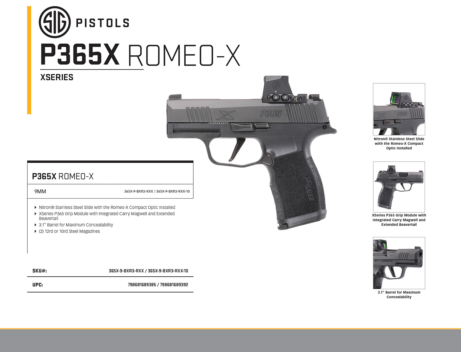 SIG 365X9BXR3RXX10 P365 9MM 3.1 OR 10R BLK