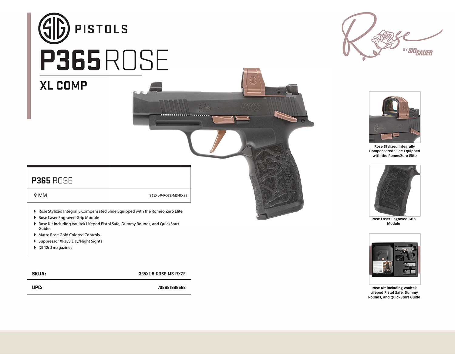 SIG 365XL9ROSEMSRXZE P365 9MM 3.7 XR3 12R RS/BK