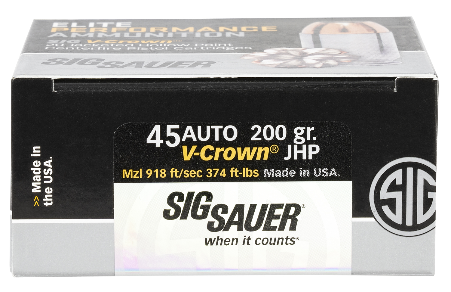 Sig Sauer E45AP120 Elite Performance 45ACP 200gr V-Crown Jacketed Hollow Point 20 Per Box/10 Case