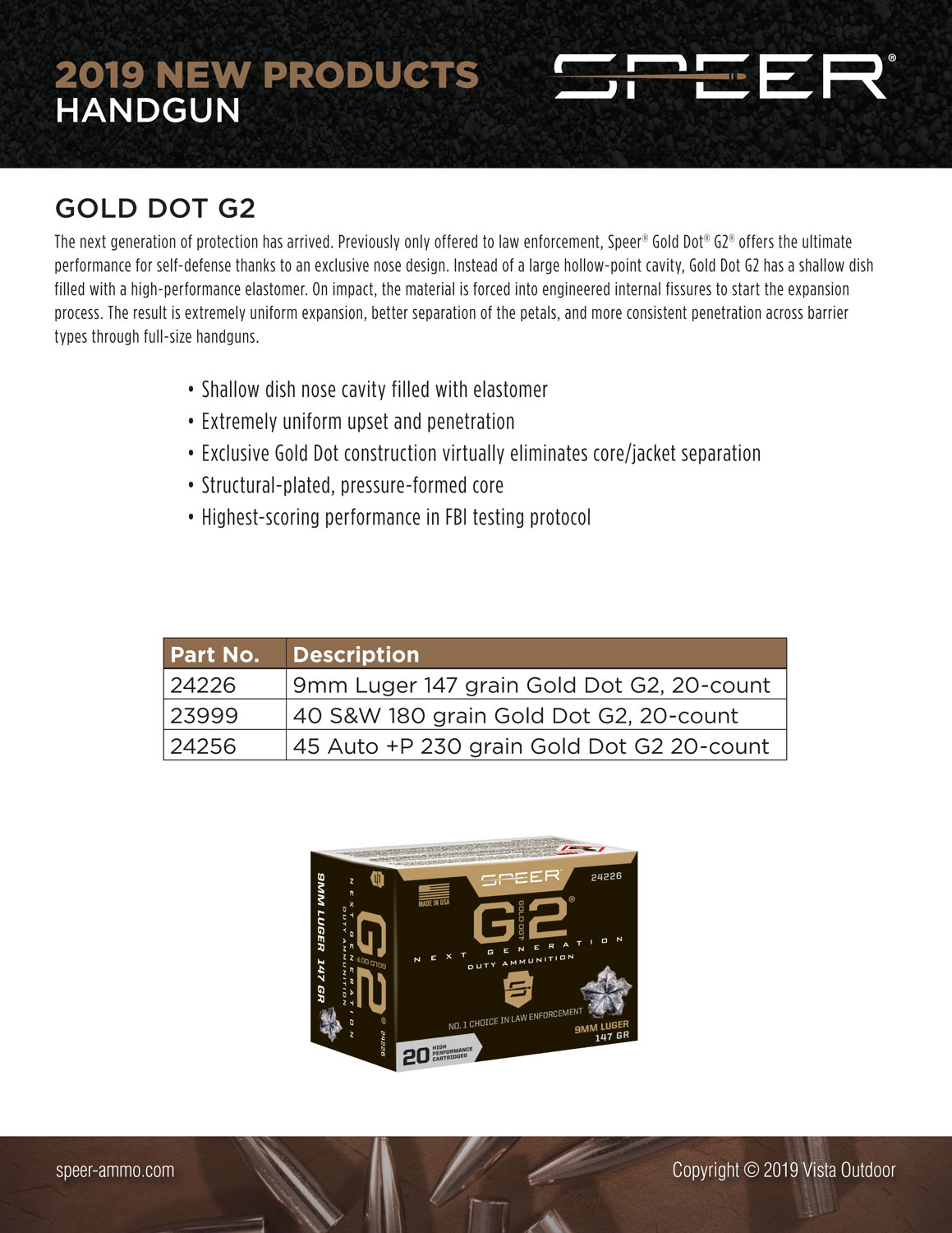 Speer 24256 Gold Dot G2 45ACP+P 230gr 20 Per Box/10 Case