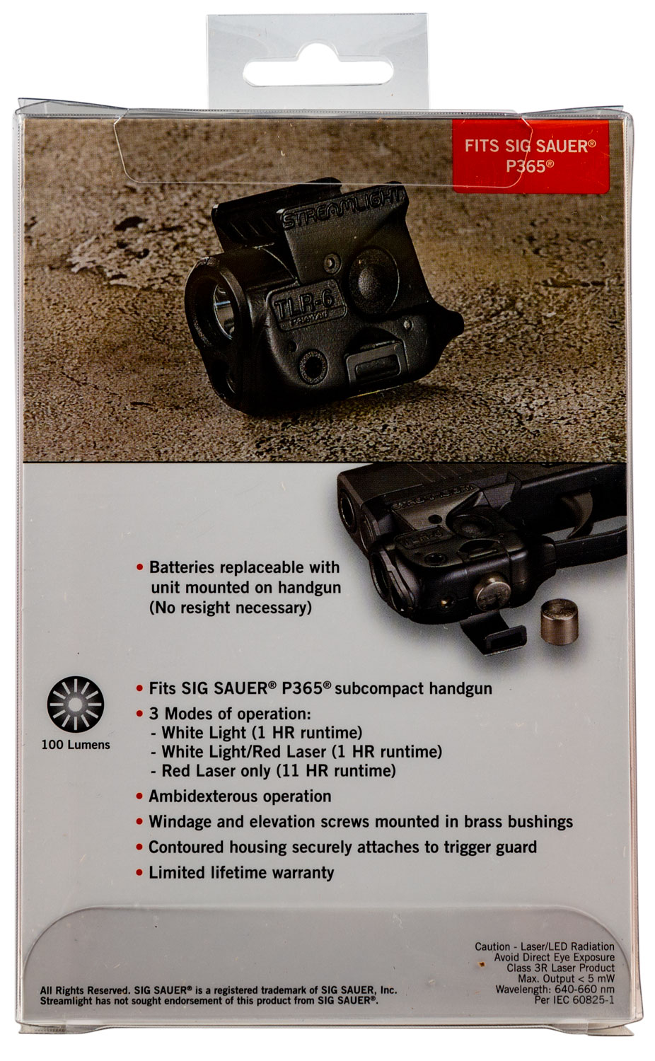 Streamlight 69284 TLR-6 Gun Light Black 100 Lumens White LED/Red Laser Sig Sauer P365/P365 XL