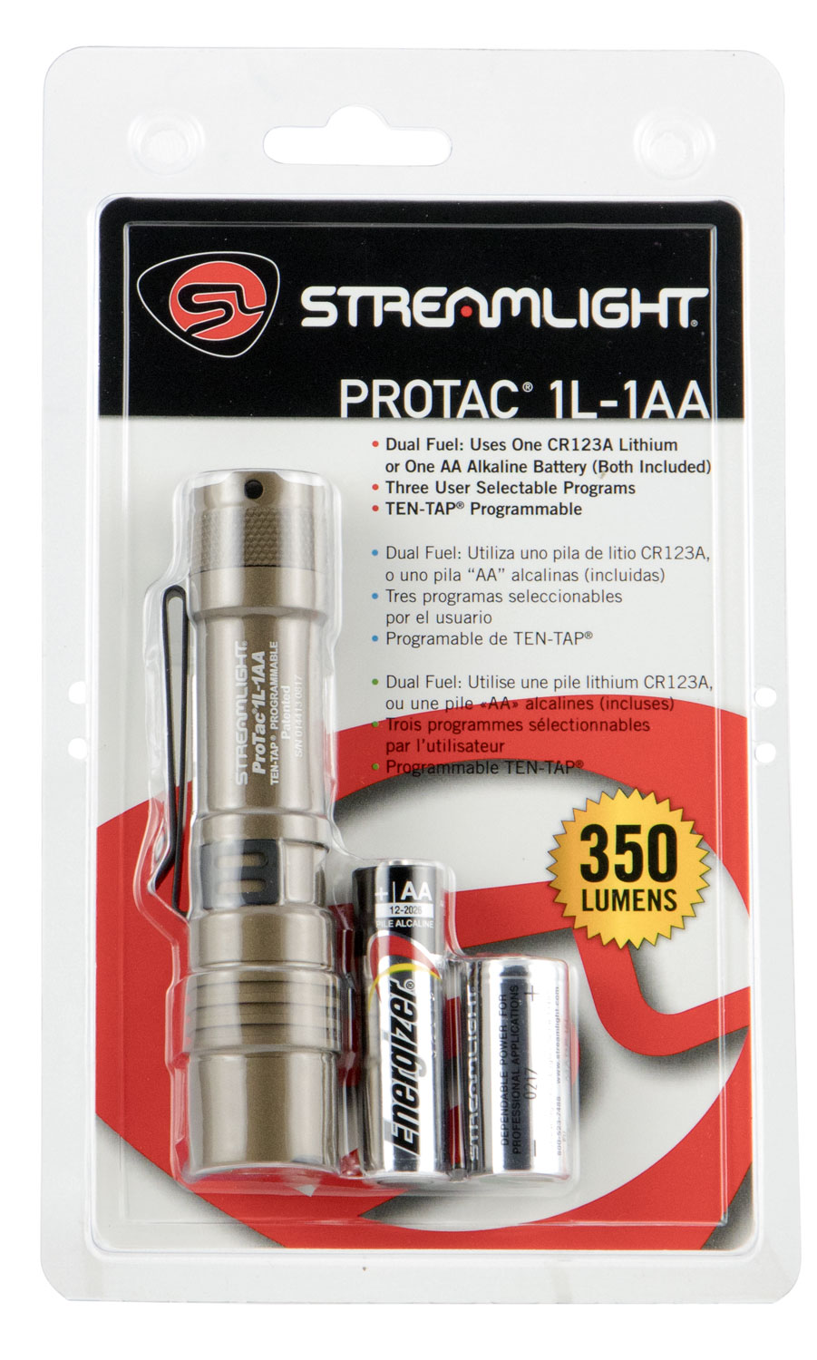 Streamlight 88073 ProTac 1L-1AA Everyday Carry Flashlight Coyote 40/150/350 Lumens White C4 LED
