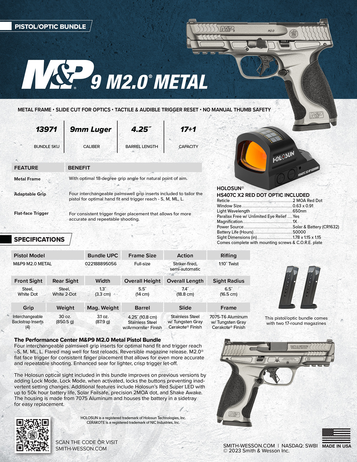 S&W M&P9 13971 METAL 9MM 4.25 HOLO 17R GRY