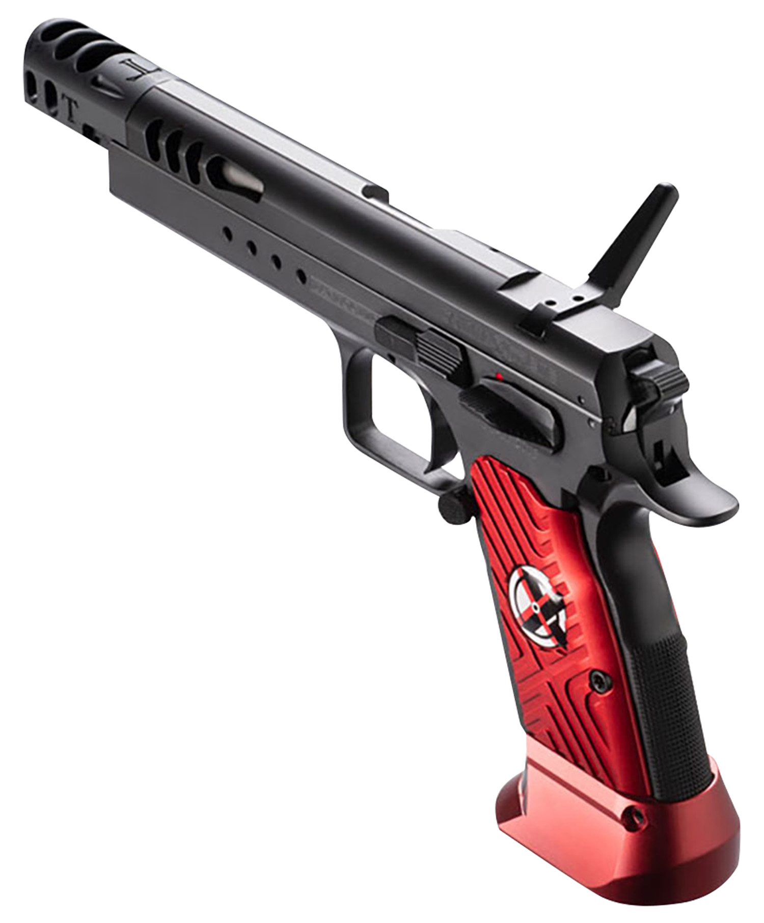 Tanfoglio IFG TFDOMX9 Domina Xtreme 9mm Luger 17+1, 5.20″ Black Polygonal Rifled Barrel, Black Black Steel Slide, Black Steel Frame w/Beavertail, Red Polymer Grip