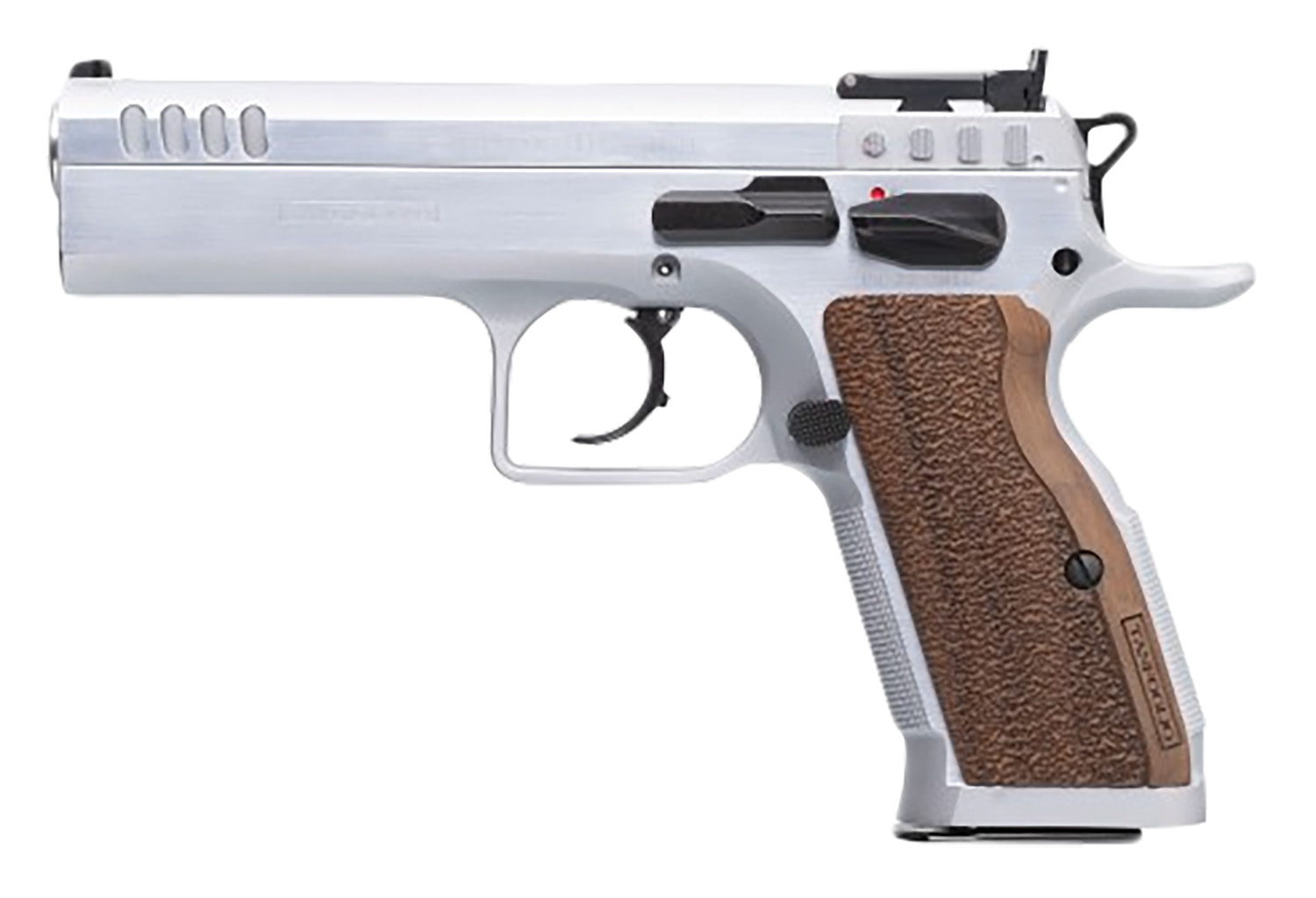 Tanfoglio IFG TFSTOCK245 Stock II Competition 45 ACP 10+1, 4.44″ Stainless Polygonal Rifled Barrel, Stainless Ported/Serrated Slide, Stainless Steel Frame, Brown Polymer Grip