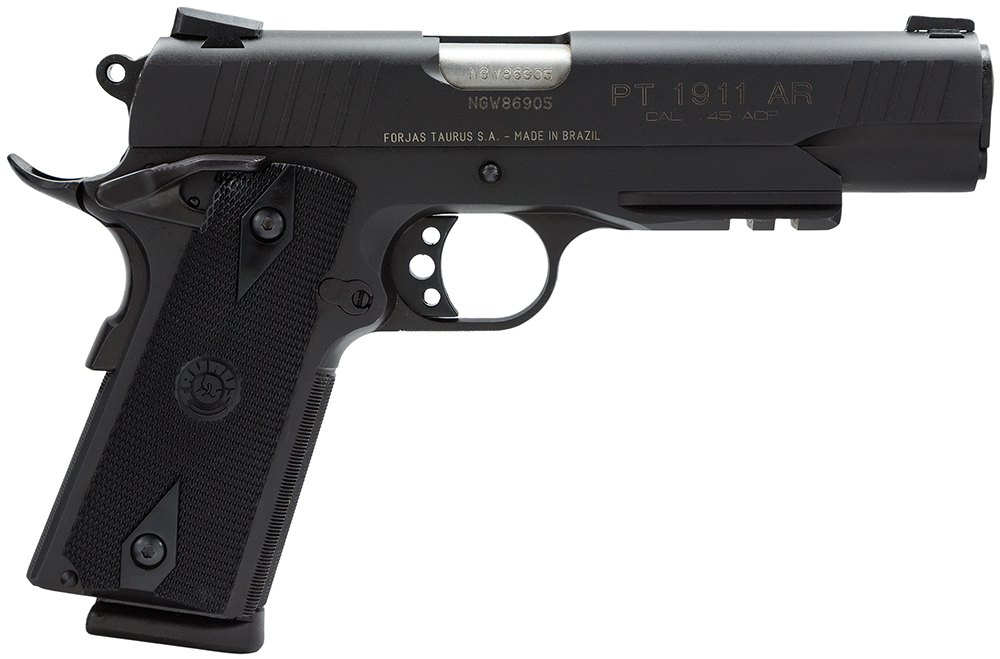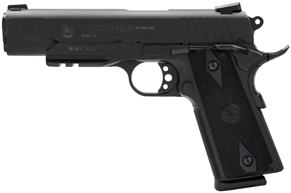 Taurus 1191101B1 1911 Full Size Frame 45 ACP 8+1 5″ Matte Stainless Steel Barrel, Matte Black Serrated Steel Slide & Frame w/Beavertail & Picatinny Rail, Black Checkered Polymer Grip, Right Hand